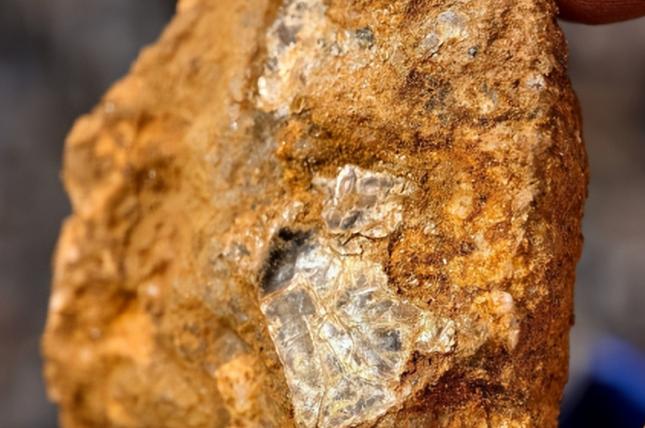 但他指出,那块铁锈色岩石是硅化褐铁矿化岩石,是金矿典型伴生岩石。