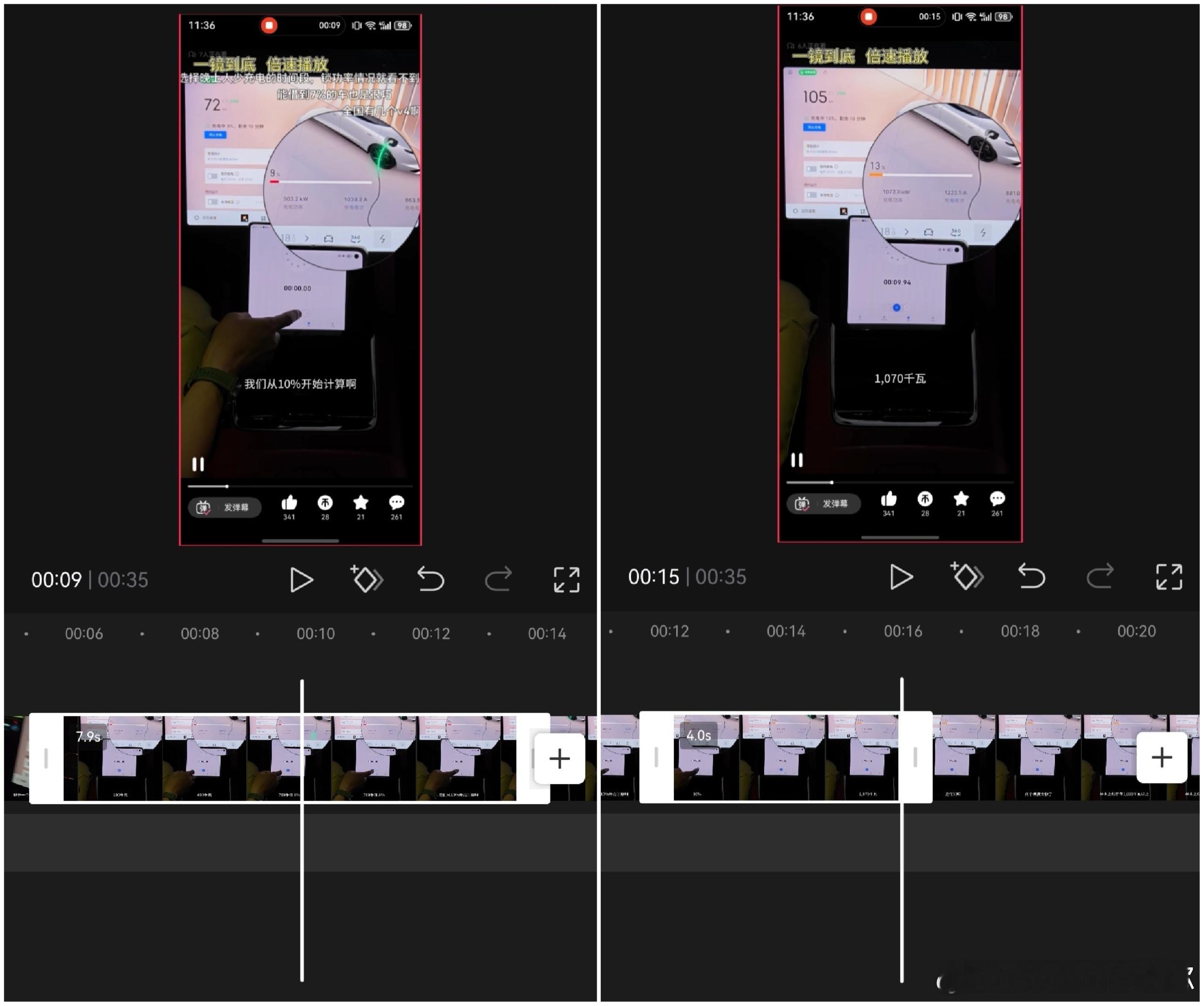 而秒表从0-10s在视频中用时约4s,若视频为统一倍速,可得视频中功率爬升的7.9s实际用时约19.75s