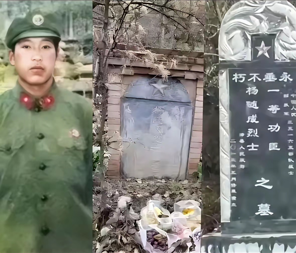 杨随成,1985年10月入伍,在对越自卫反击战中与战友共同粉碎敌人48次偷袭,12次压制敌军重机枪封锁,并毙敌5名越军,战斗中因敌军炮击牺牲,年仅19岁,获一等功并追认革命烈士。铭记历史