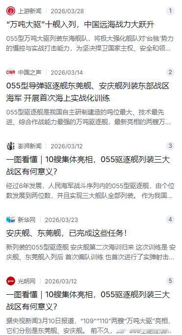 先说海上。这几年中国海军055型万吨大驱的列装速度,用一个词形容就是“稳扎稳打”。2026年3月,第九艘东莞舰和第十艘安庆舰同步入列东部战区海军,至此055驱逐舰数量已达10艘,三大舰队全部配齐。而且这回跟以前不一样,两艘新舰一入列就搞起了“双舰同框”的实战化训练,防空反导、近距火力反击、实弹射击全都练上了。军事专家张军社解读说,这说明055已跨过单舰磨合阶段,进入“一入列即形成战斗力”的快车道。过去说中国海军“下饺子”,那是数量上的说法;现在看,不光饺子多,馅也实了。这些万吨大驱满载排水量超过1.2万吨,配通用垂直发射系统,防空、反舰、反潜、对陆打击样样能打。它们填补了东海方向万吨大驱的空白,直面台海一线,威慑“台独”势力。