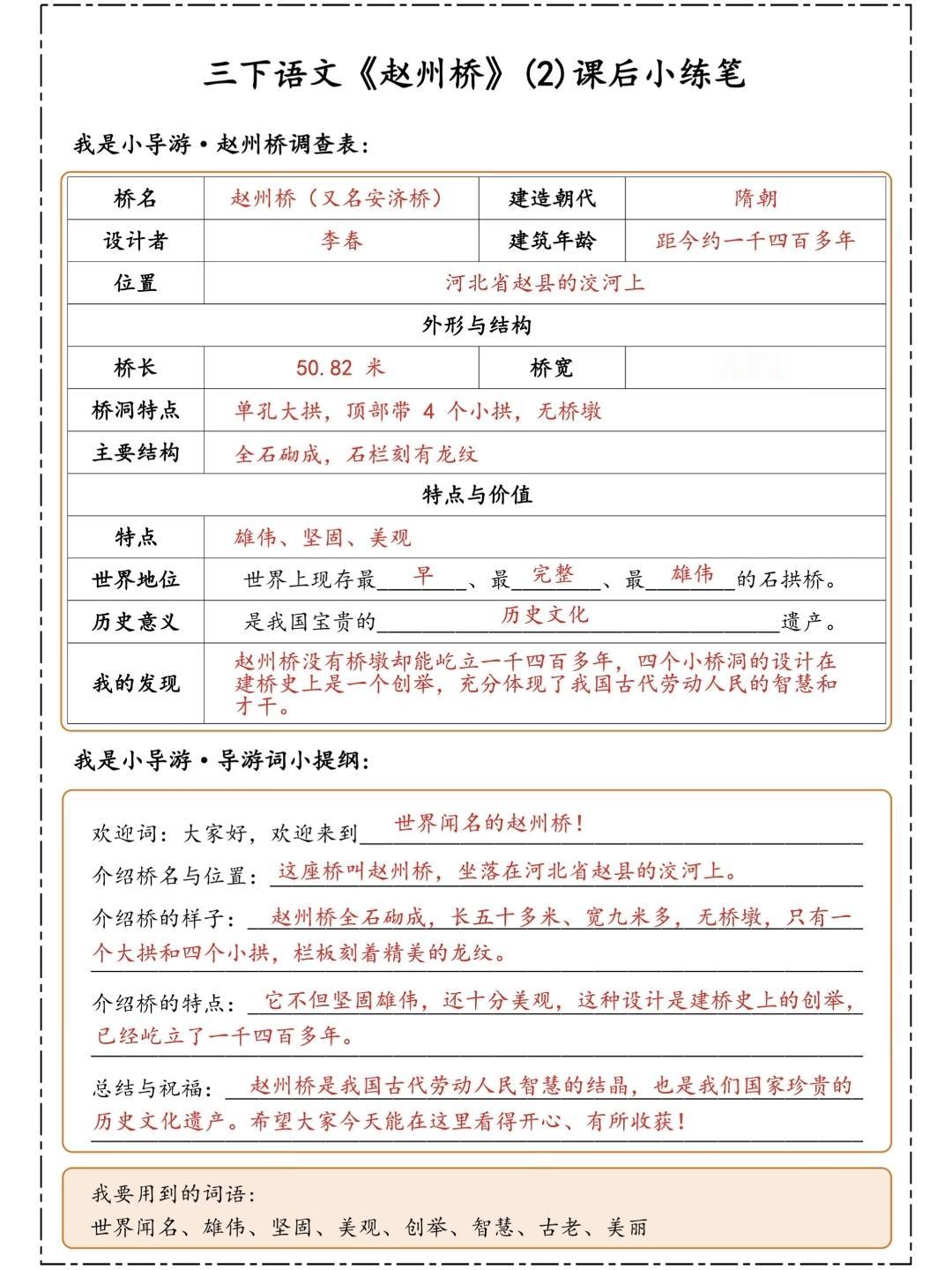 三年级下册语文仿写小练笔,第四单元第14课《赵州桥》仿写小练笔及范文,收藏参考学