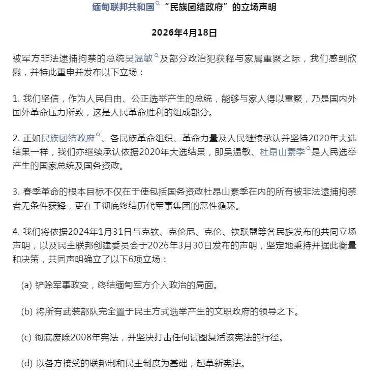 缅甸最大的反政府组织民族团结政府(NUG)公开呼吁,称吴温敏才是缅甸唯一合法总统