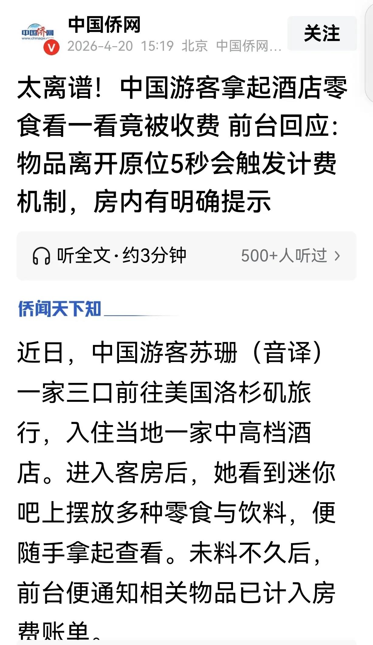 谁成想就这随手一看出事了,第二天退房时,账单上列着好几笔迷你吧消费,苏女士当场就愣了,赶紧问前台:“我们没吃没喝啊,是不是搞错了?”