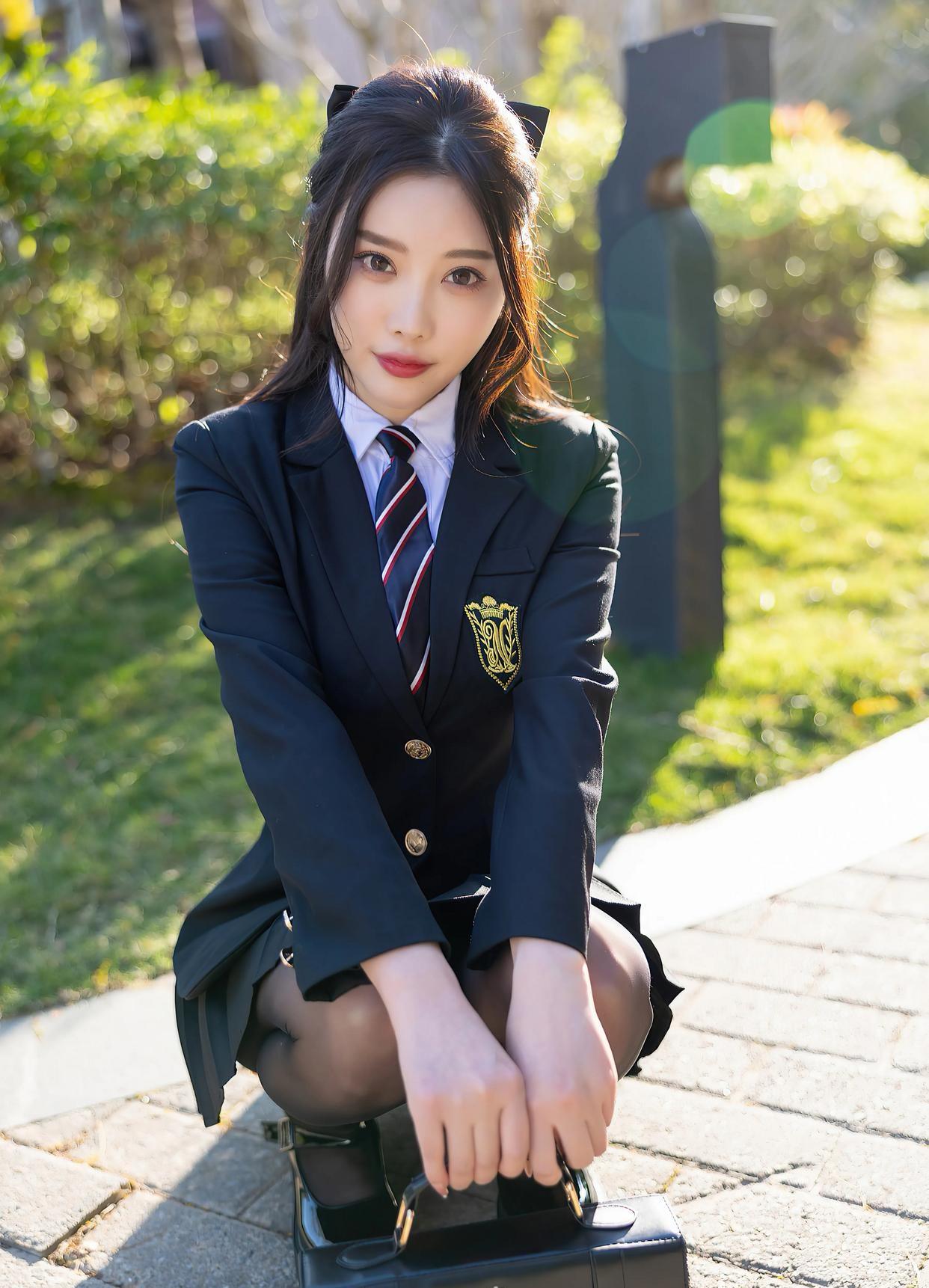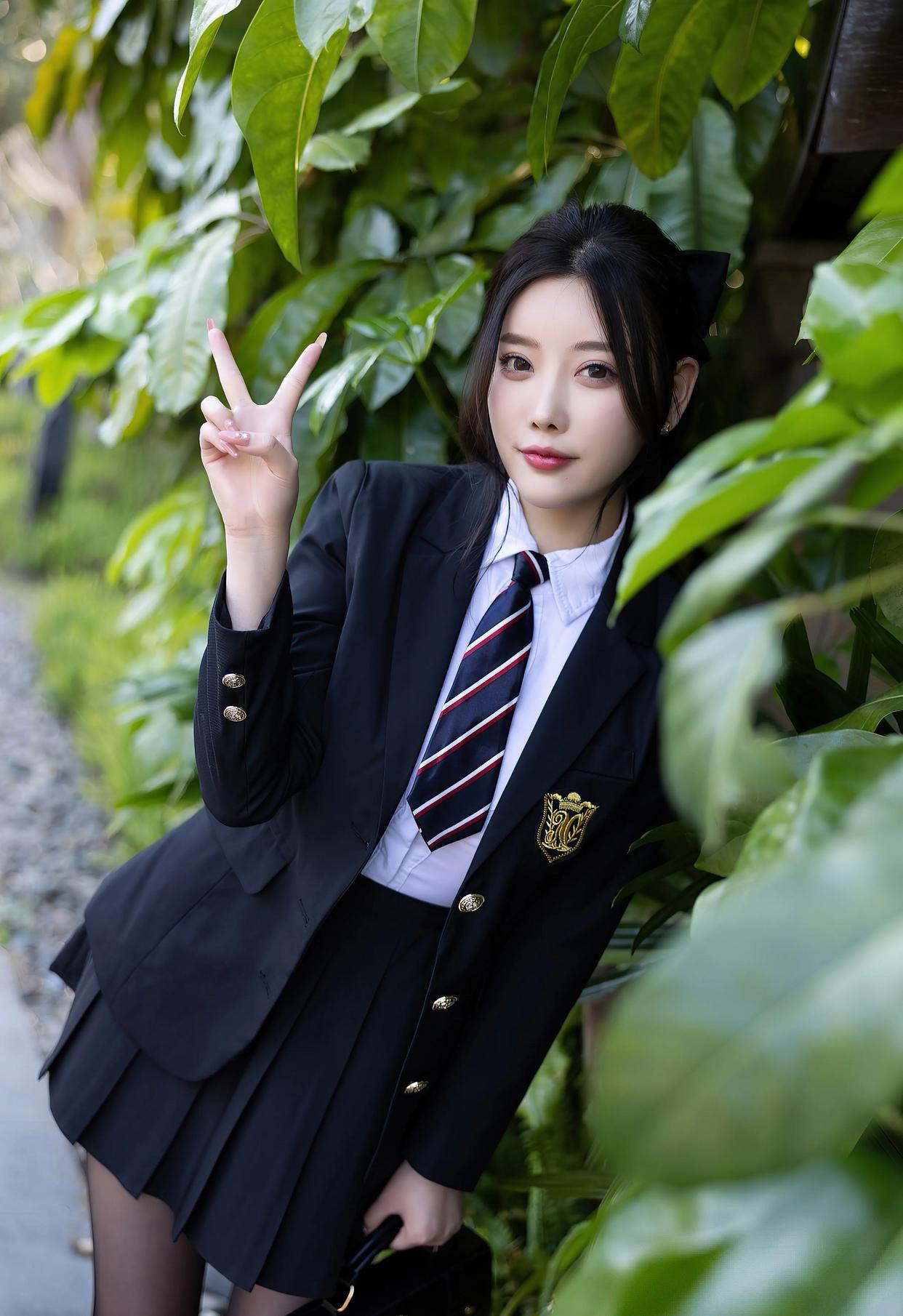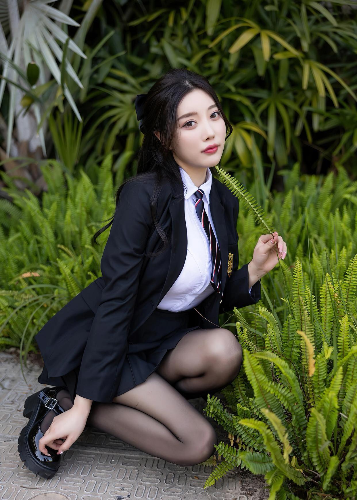 杨晨晨,学院风黑丝JK裙,人美条靓