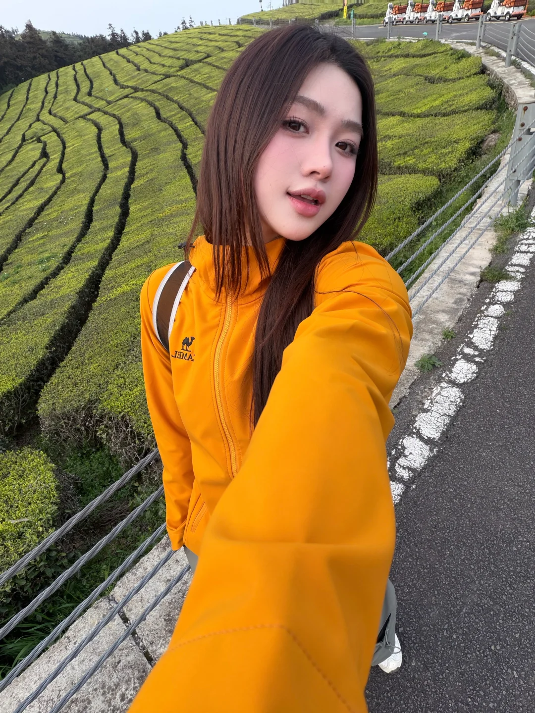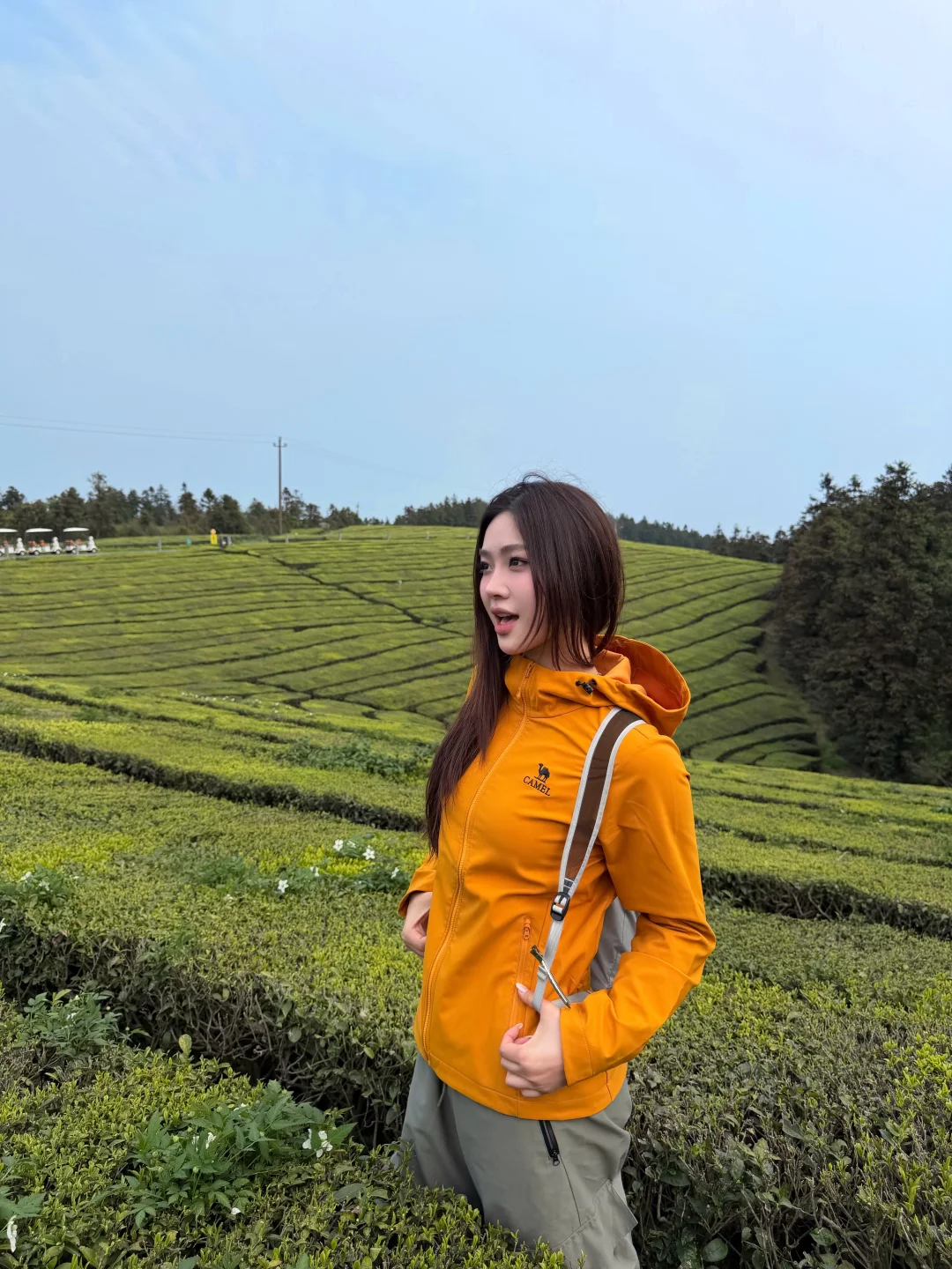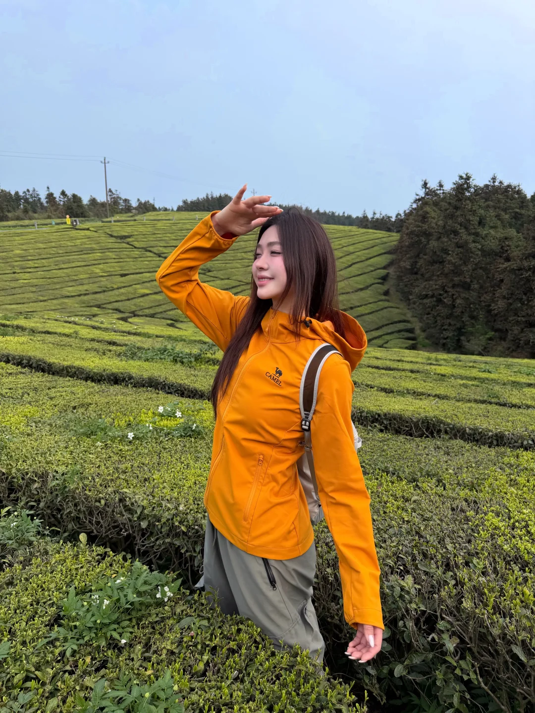在一片绿色茶田里拍照氛围感直接拉满📸