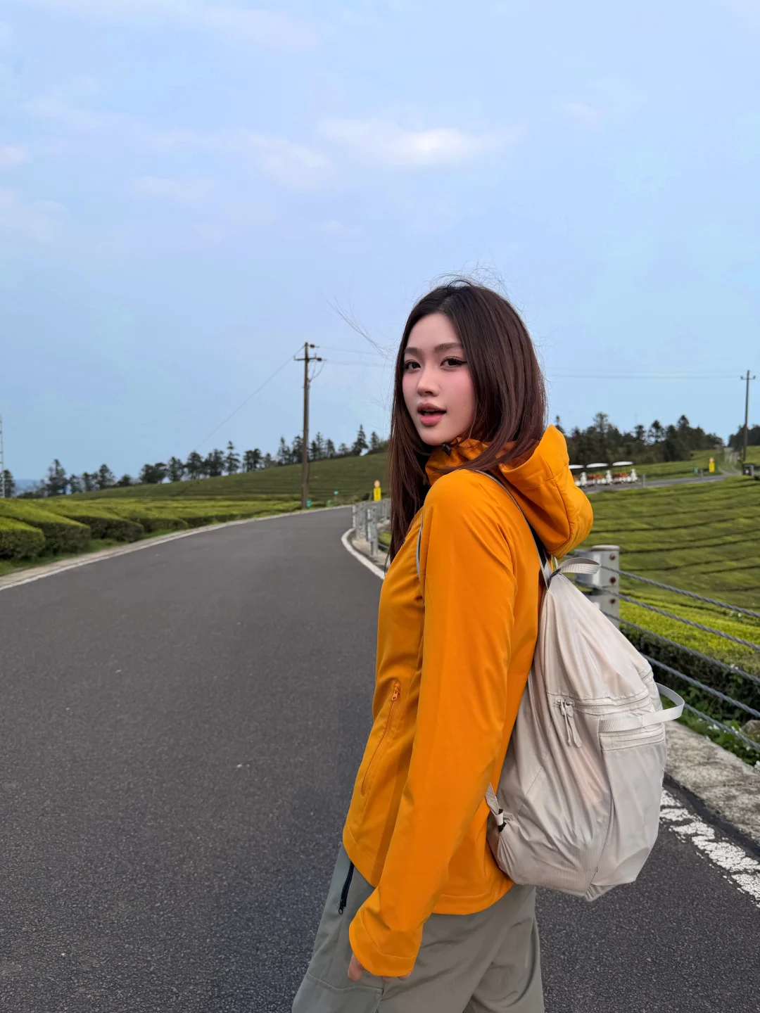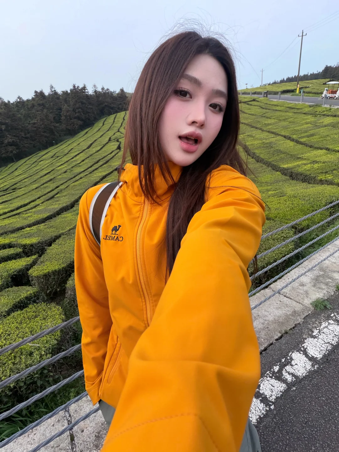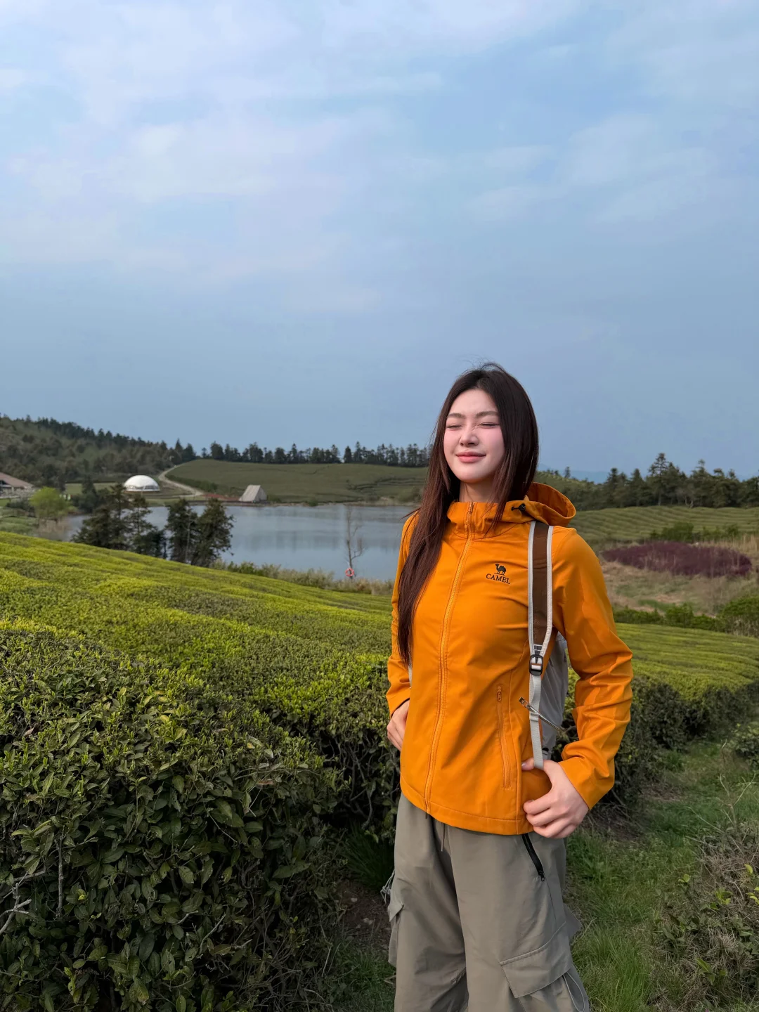 在一片绿色茶田里拍照氛围感直接拉满📸