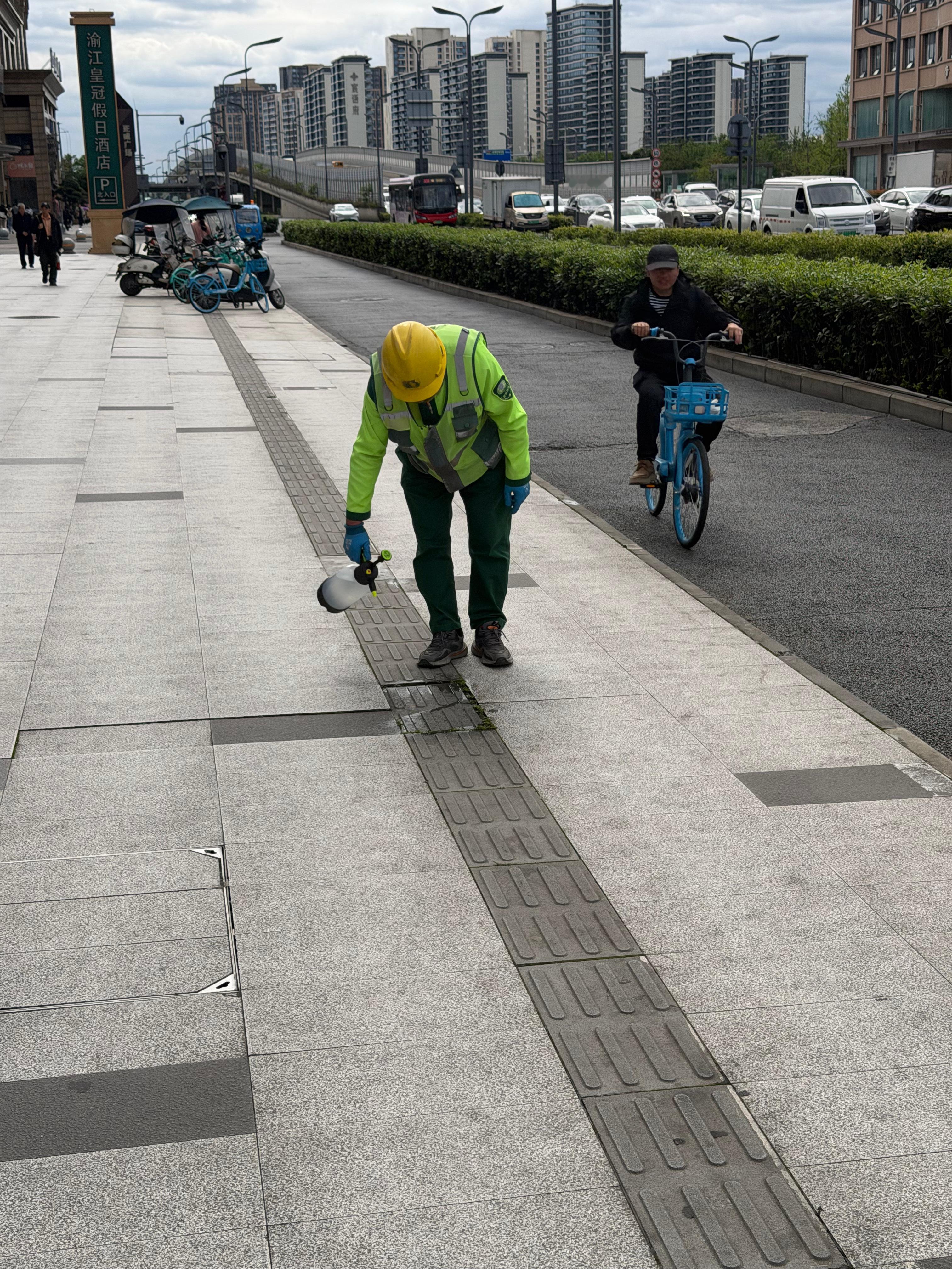 成都的环卫大哥好有爱,我看他浇水浇了一路了 成都·成都武侯渝江皇冠假日酒店