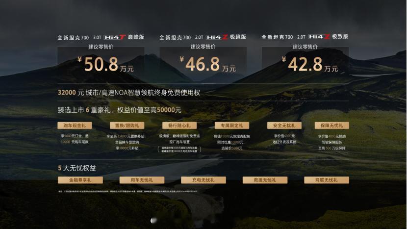 4月20日,全新坦克700正式上市,售价42.8万元起。有趣的是,这台车在发布的时候,没有再内卷参数,别人在卖产品,坦克700在卖生活卖向往。所以这台车没有走硬派越野的老路,也没有照搬城市豪华SUV的逻辑。而是把东方美学、硬核性能、舒适豪华、用户生态融合得恰到好处。对于想要一台“全能无短板”的高端SUV用户来说,这款车确实做到了。