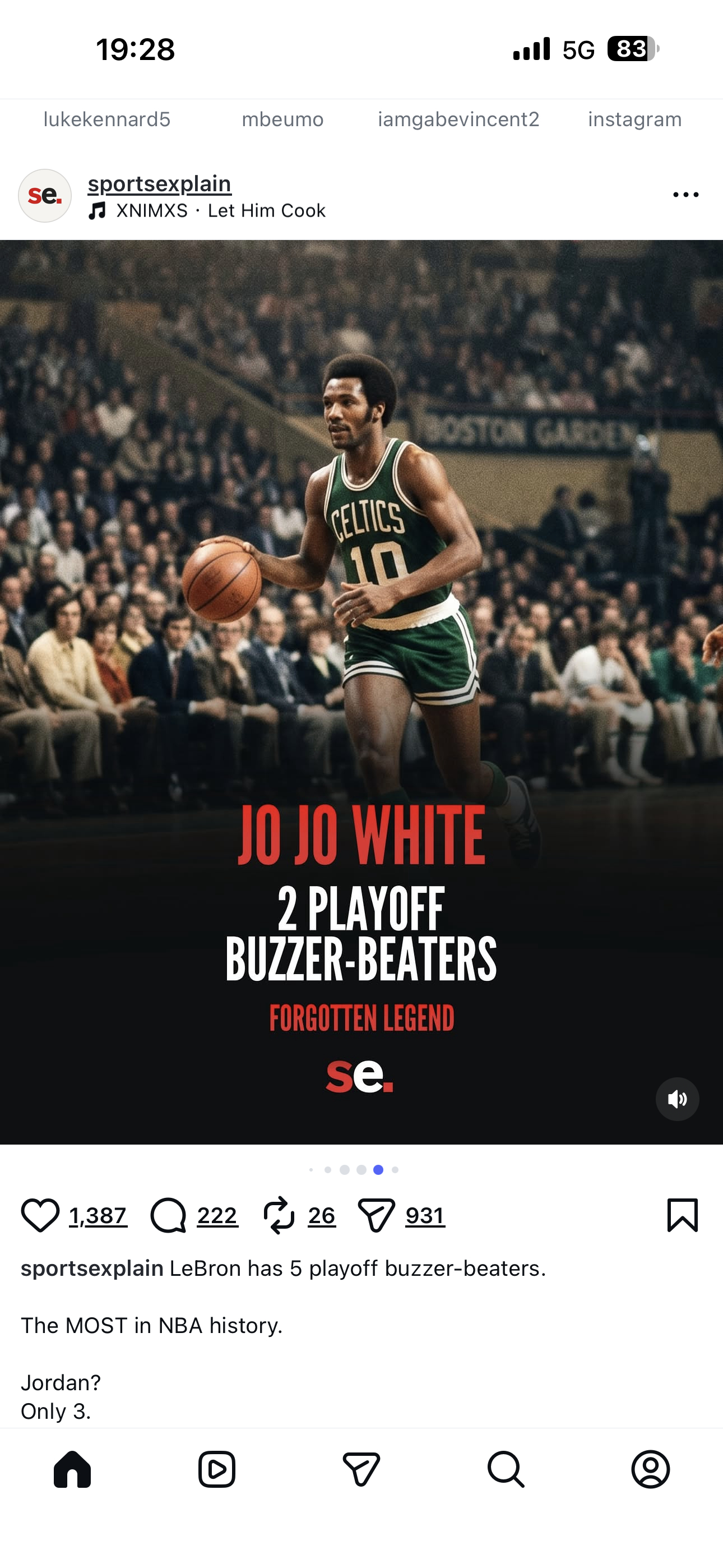 美媒盘点季后赛压哨绝杀次数最多的5名球员:1,詹姆斯 5次2,乔丹 3次3,利拉德/皮尔斯/乔乔怀特 2次