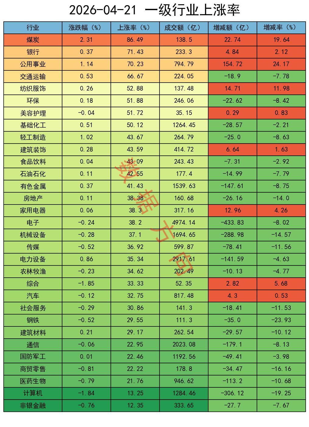 煤炭、银行、公用事业、交通运输,分列榜单前四位