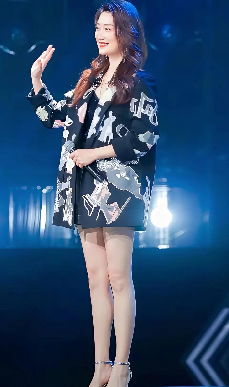 45岁的女歌手玲花长相好标,一双腿又直又长,特别显气质。