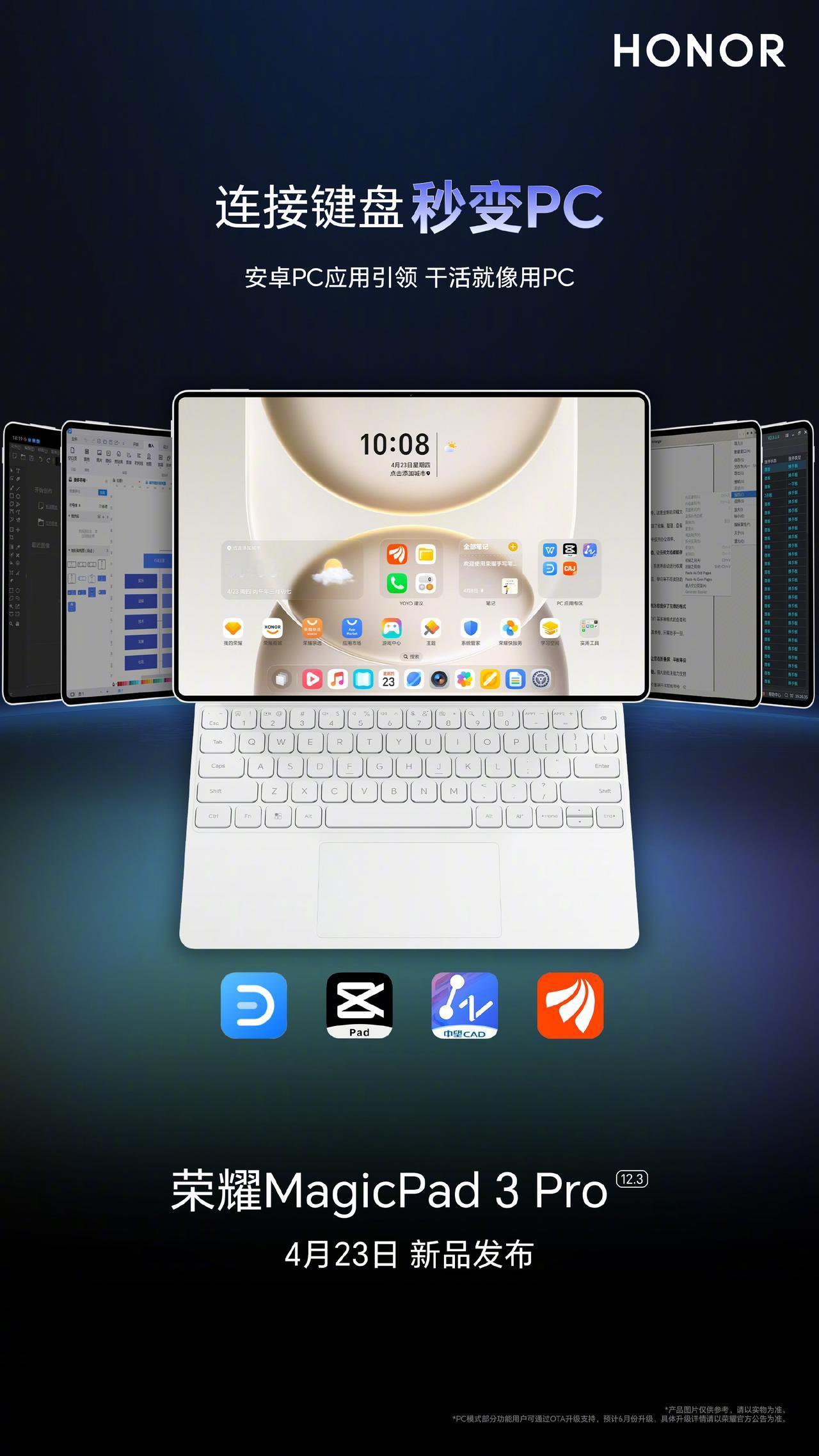 刚刚看到官宣海报,即将发布的荣耀MagicPad3 Pro 12.3版本,将会搭载第五代骁龙8处理器,屏幕采用护眼OLED屏幕,连接蓝牙键盘之后,PC模式下能够满足轻办公的使用需求,外出携带起来更轻便,全新Linux实验室养虾方便,游玩移植游戏也是蛮有趣的 畅聊数码新品 数码资讯