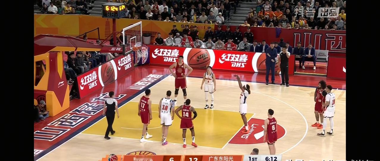 比赛刚开场广东就打了个7-0的小高潮,眼看局势要一边倒,没想到山西队慢慢把比分追了上来,后来甚至反超了,最多的时候领先了七八分。