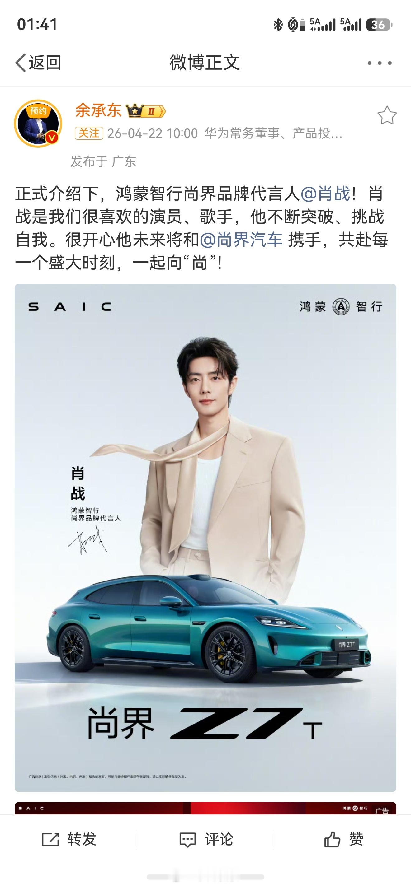 余承东官宣肖战代言 太猛了太猛了,评论区现在全都是有钱又有颜小飞侠们