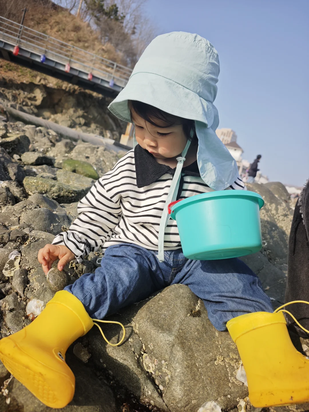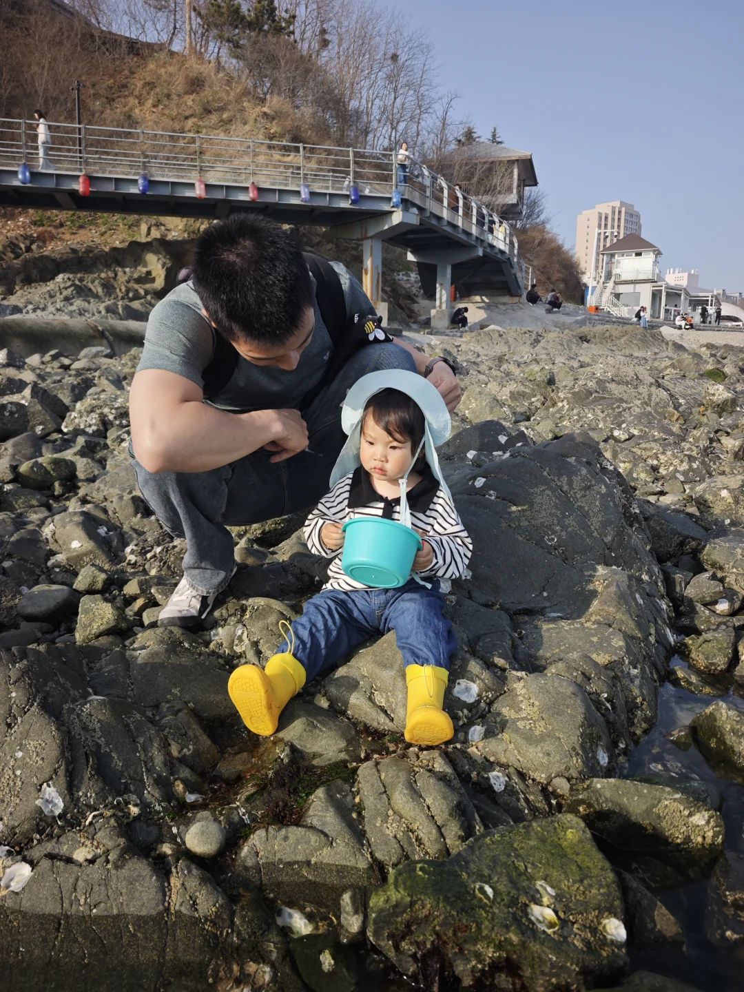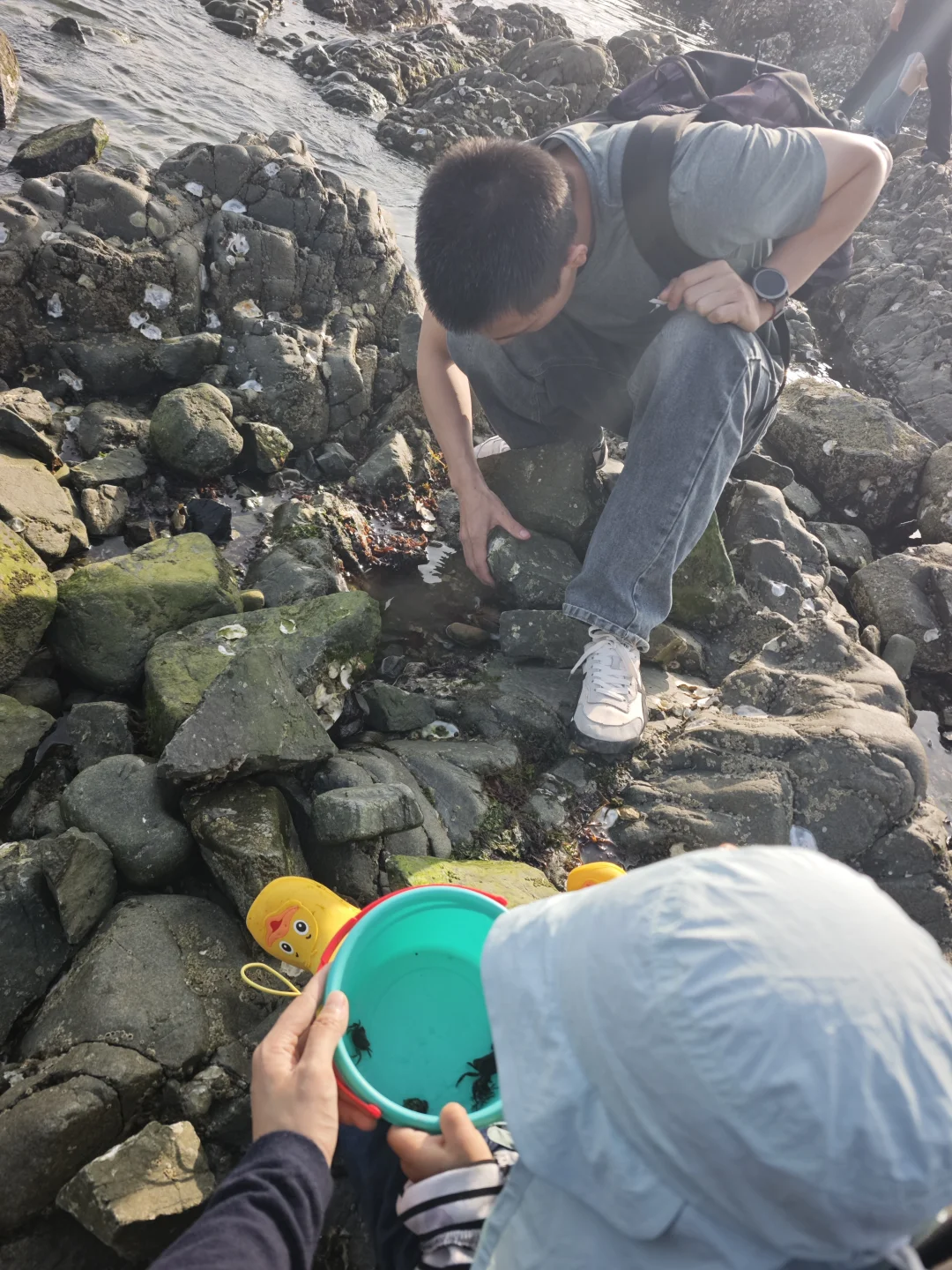 带小桶挖沙抓小螃蟹,娃玩到不想走🌊