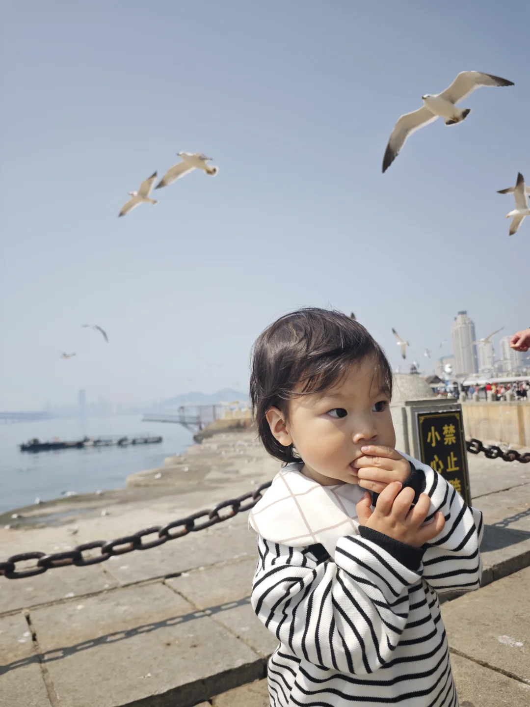 蓝天大海+成群海鸥,娃追着跑超开心
