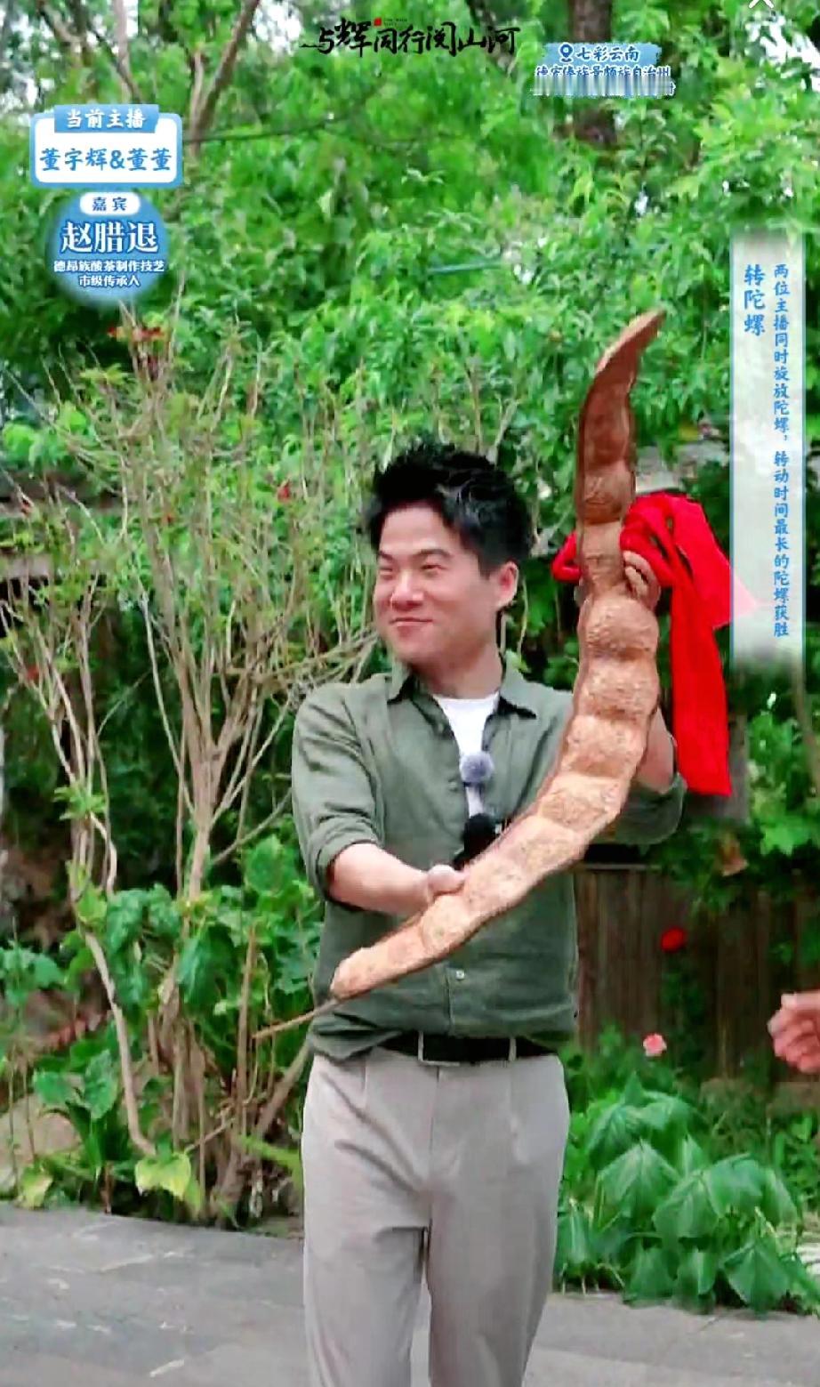 董宇辉果然是从小没少玩的皮孩子,第一次玩也玩的非常好。当别人旋转只能持续几秒,最多十几秒时,董宇辉第一次就能让陀螺转上45秒,真的是凭实力获得了冠军,并拿到了奖品,云南的大豆角。