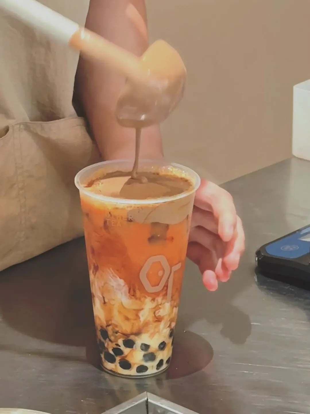 正常冰+不加糖+黑糖薯丸,咸香芝士和泰奶超搭,口感浓郁又不腻,喝一口就上头!