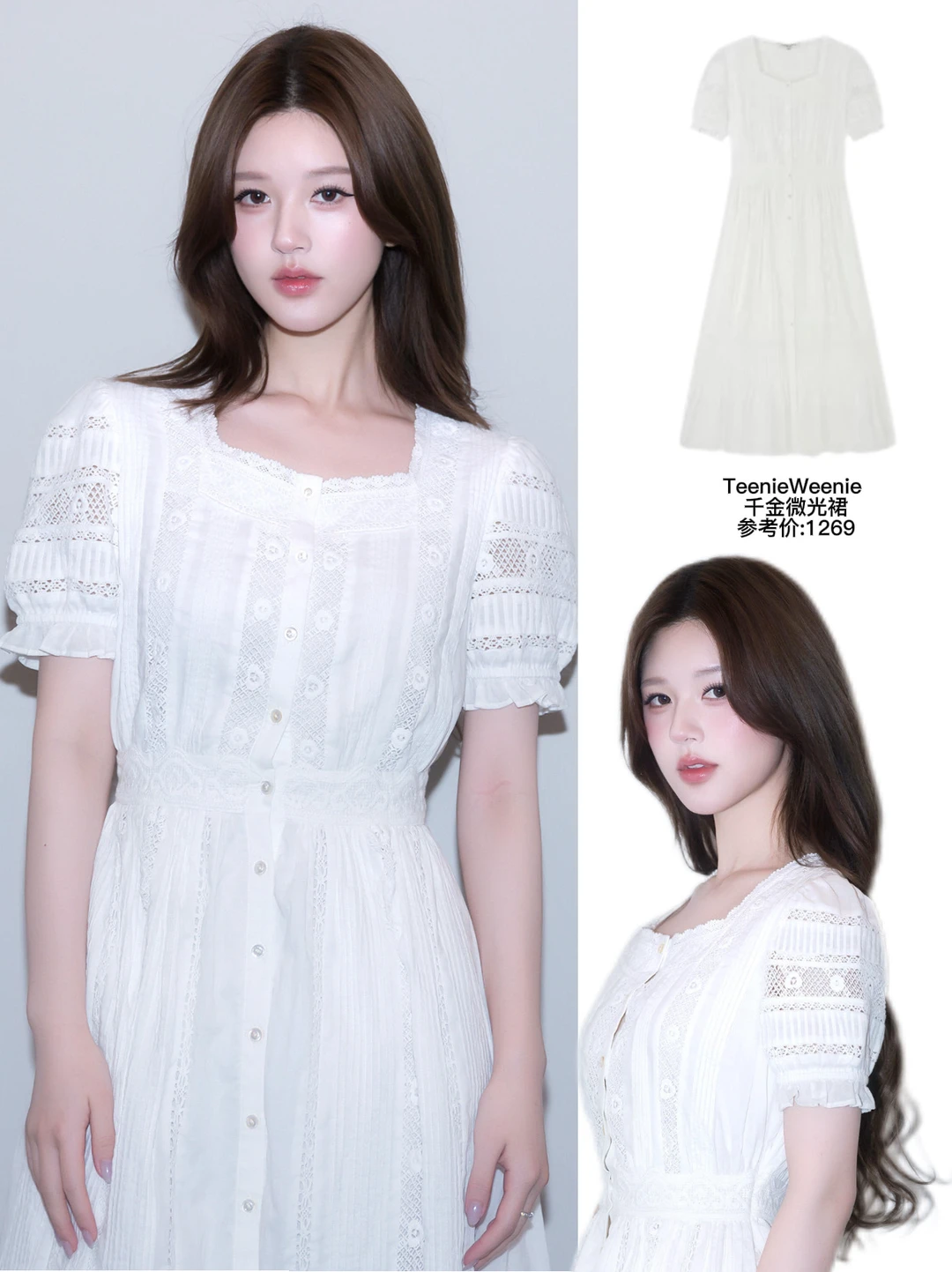 精准拿捏身材比例的收腰设计,拉高腰线还留足了舒服余量。无袖蕾丝花边精致又显气质,配上露思的温柔长发完全就像从画报里走出来的现偶白月光女主