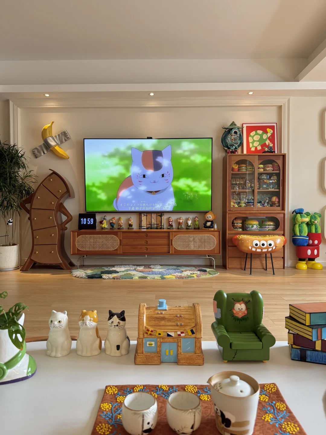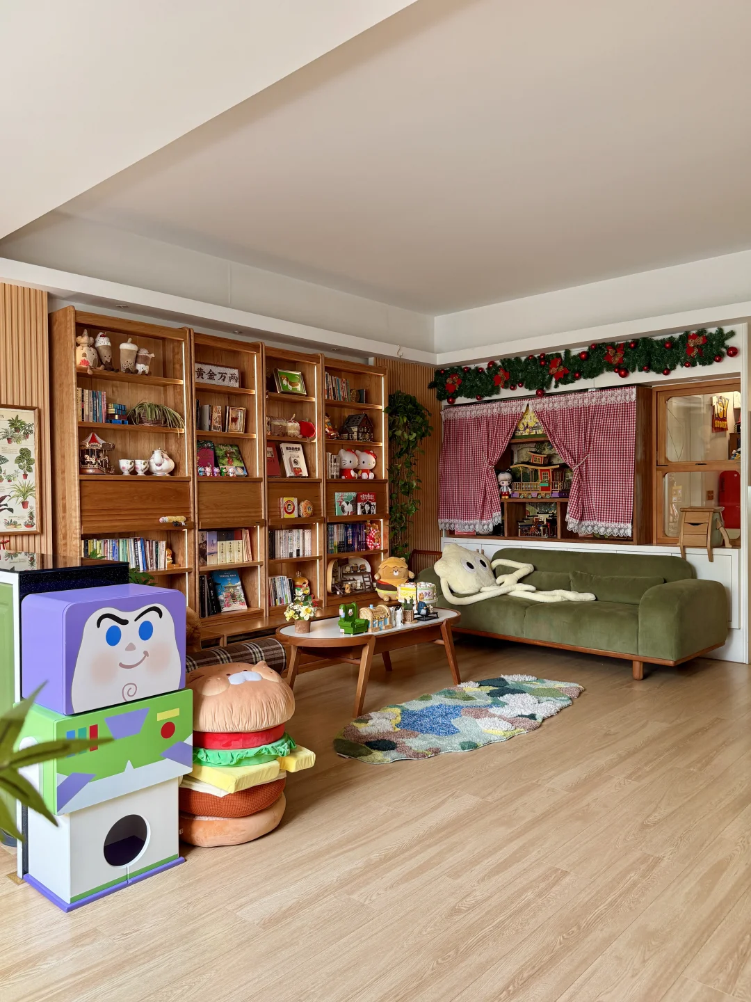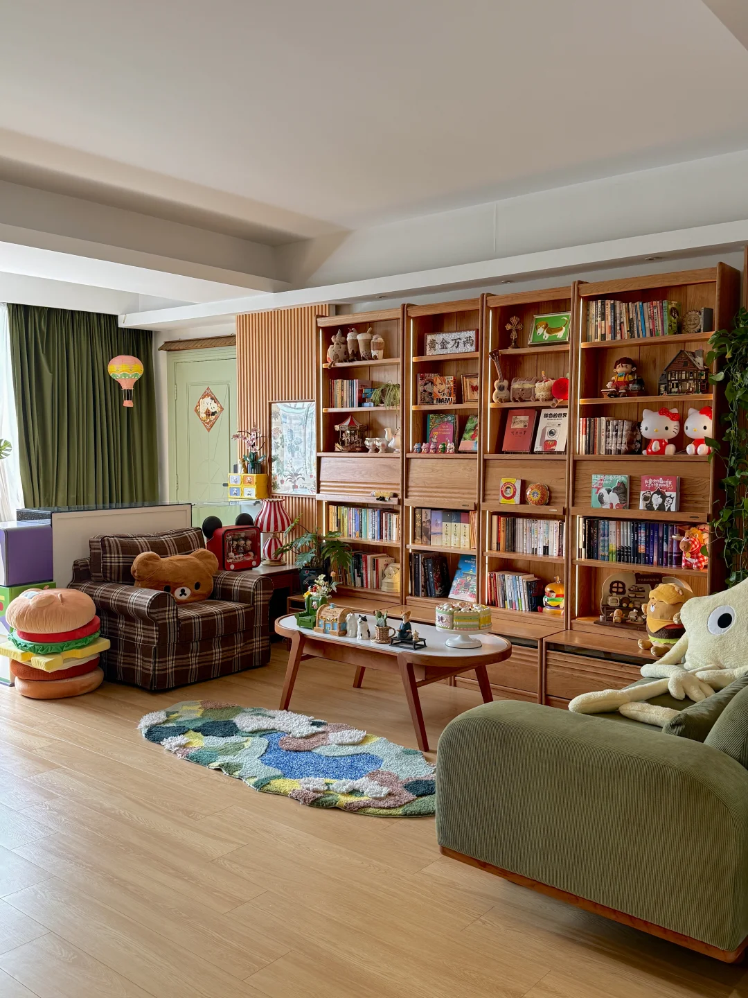 客厅原木风,满墙书柜仿佛穿越进宫崎骏童话世界!