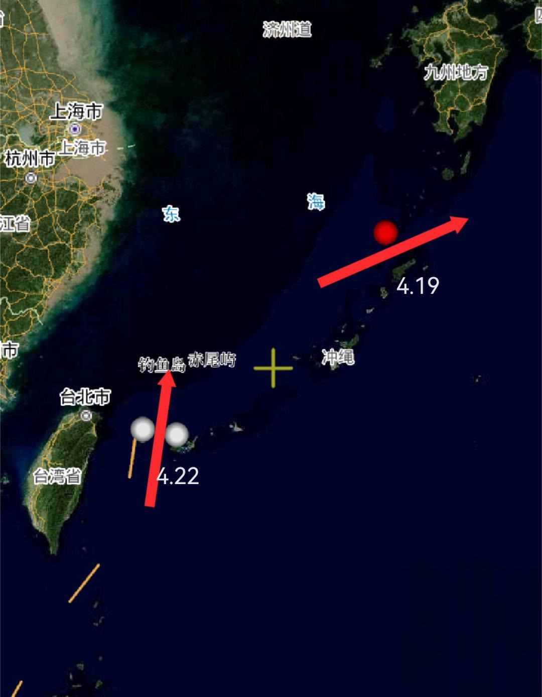 君子报仇从早到晚之 133编队经宜兰以东的与西水道从西太返回, 编队此前从琉球附