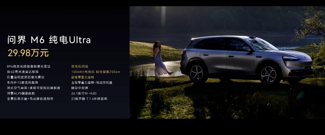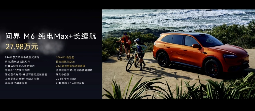 问界M6 增程Max+ 25.98万元问界M6 增程Ultra 27.98万元问界M6 纯电Max+长续航 27.98万元问界M6 纯电Ultra 29.98万元