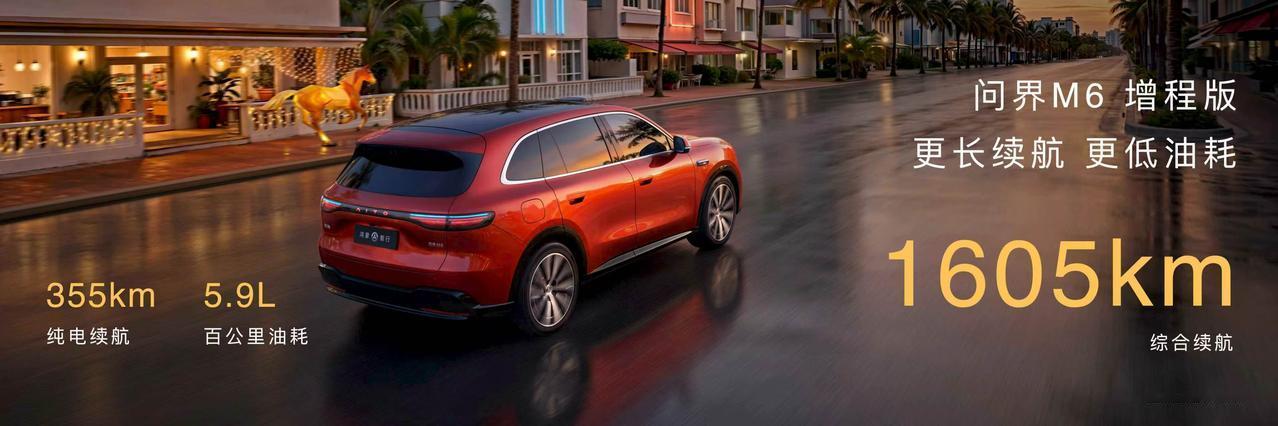 问界M6搭载华为巨鲸电池平台,纯电版全系标配100kWh三元锂电池包,云端BMS电池管理系统。 纯电版CLTC续航里程至高760km,增程版CLTC综合续航至高1605km,CLTC纯电续航至高355km,百公里油耗低至5.9L。