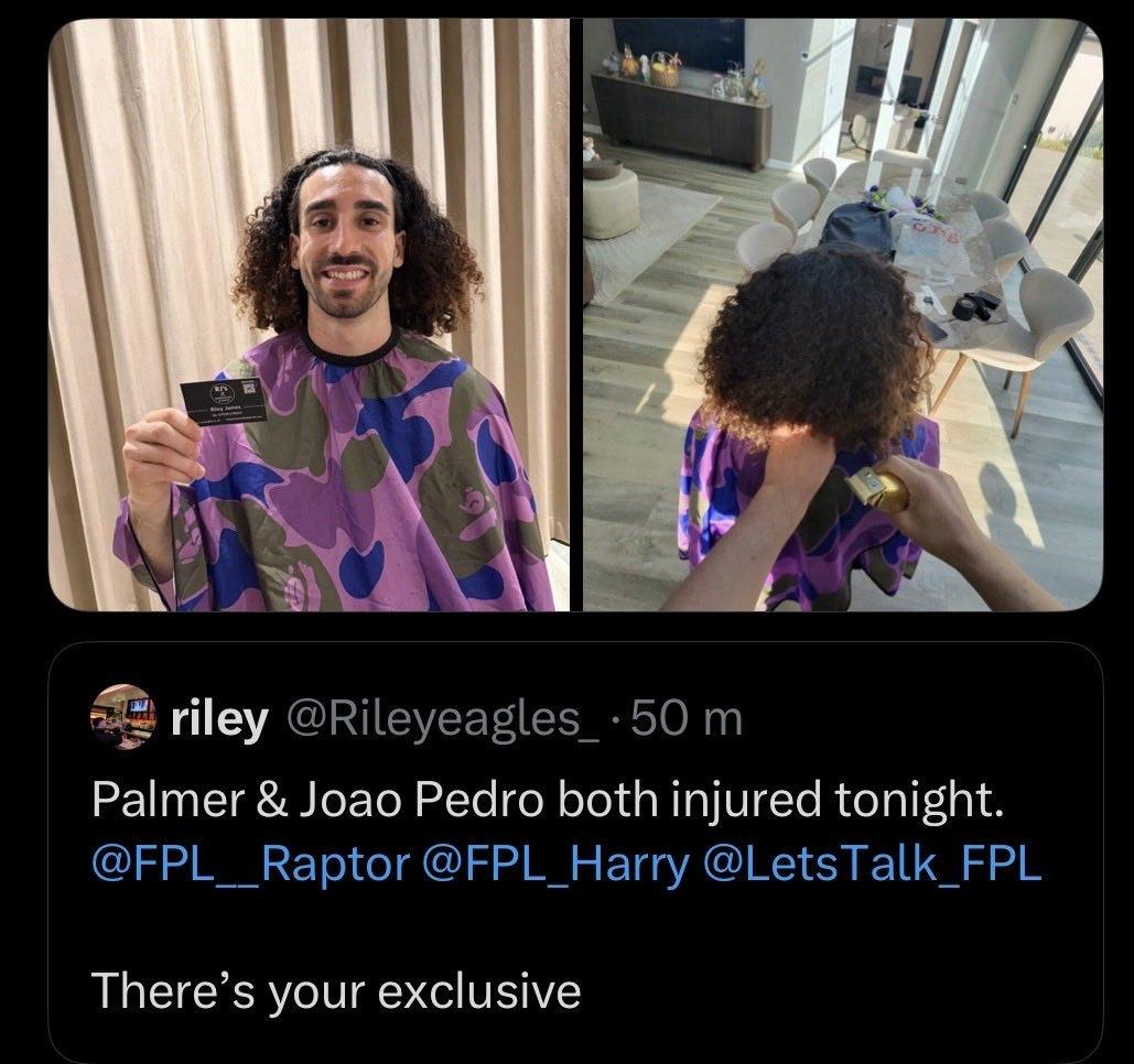 【理发师泄密😂】在切尔西0-3不敌布莱顿的赛前,库库雷利亚的理发师提前泄露了队内消息! 这位理发师在社交媒体上写道:“帕尔默和若昂·佩德罗今晚都将伤缺,这就是给你们的独家消息。” 随后这条帖子被删除,该账号也已注销😳。切尔西