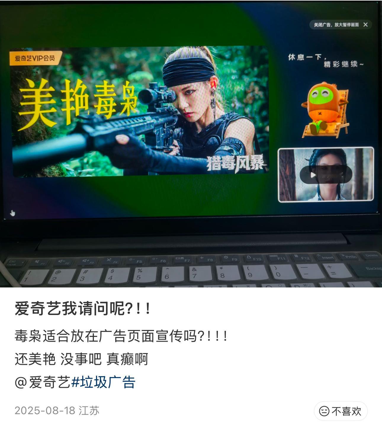 爱奇艺这种引发争议的暂停广告截图,不是第一次了有网友去年就反映过,用美艳毒枭来引