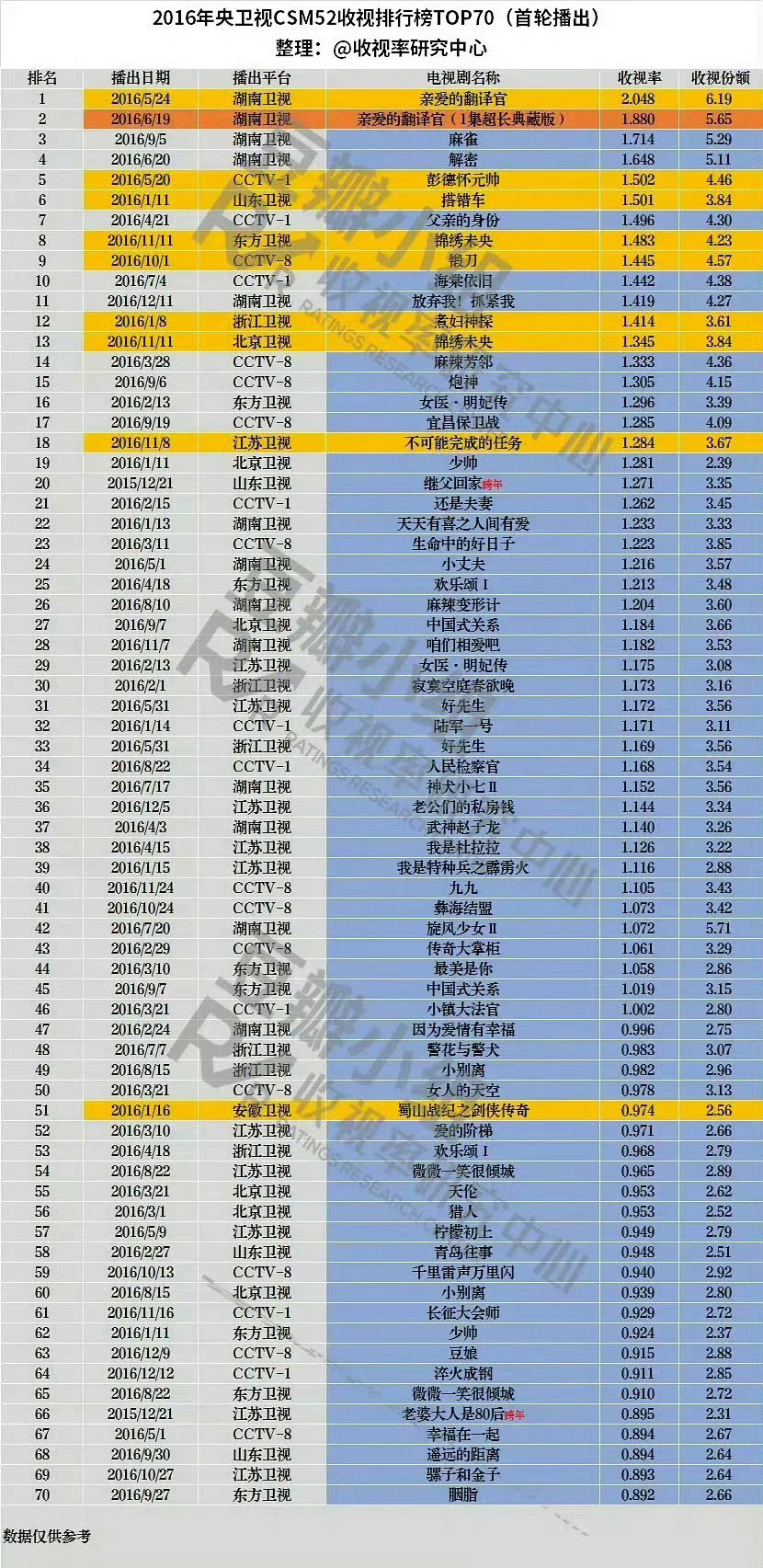 2016年央卫收视年冠且唯一平均破2——杨幂《亲爱的翻译官》的含金量杨幂内娱大爆