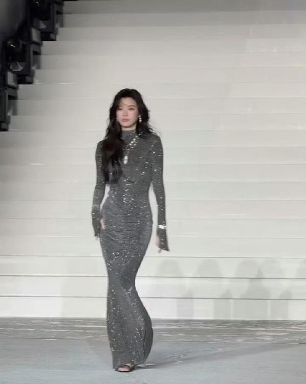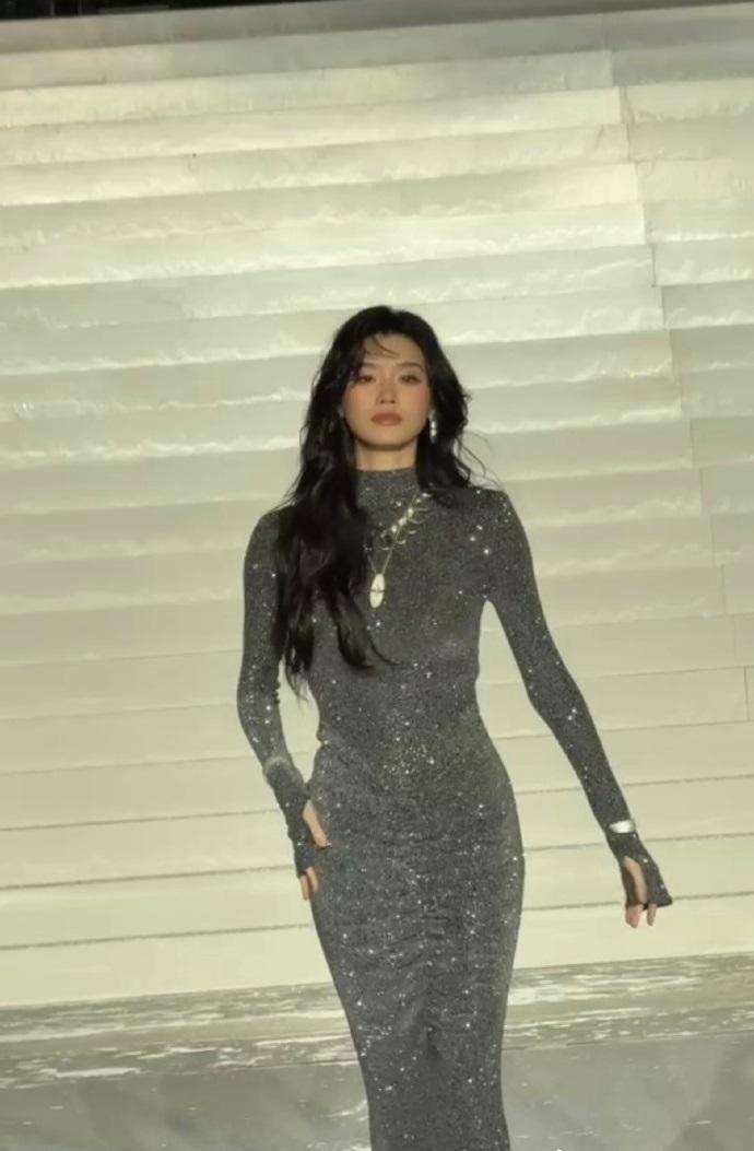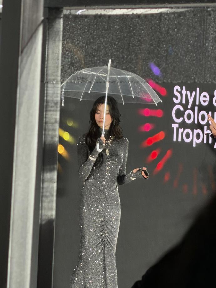 这回她在雨中走秀,别有一番风韵,不得不说奚梦瑶真的好敬业,是个专业的模特。