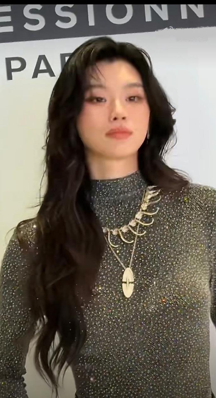 奚梦瑶搭配的这件衣服上有很漂亮的亮片设计,能够让她彰显出了奢华感。