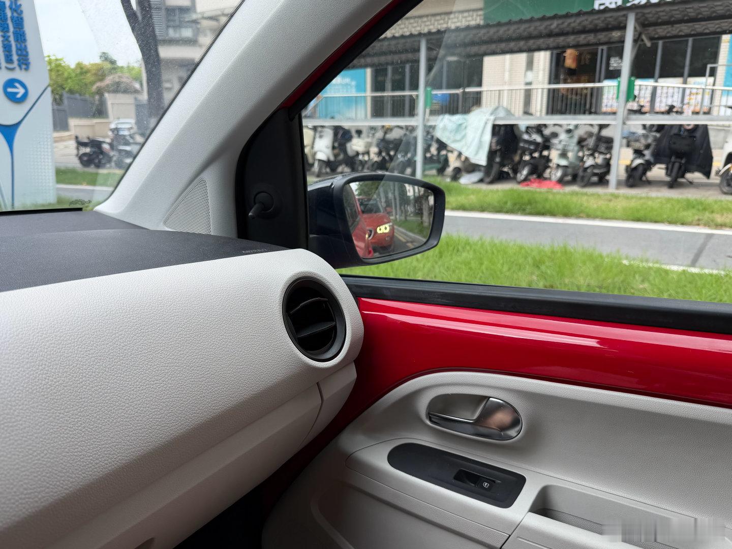 门板裸露的油漆,挡杆周围裸露的地毯毛毡,除了座椅顶棚之外摸不到软包,甚至仪表台中间的出风口是吹人吹窗集成一体的,到处都说明了它的廉价身份。但设计很讨喜,看起来挺精致的,应该不会有人能拒绝这个可爱的外观。