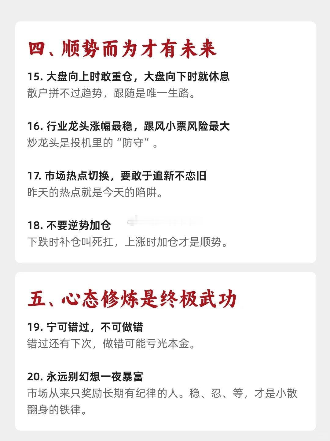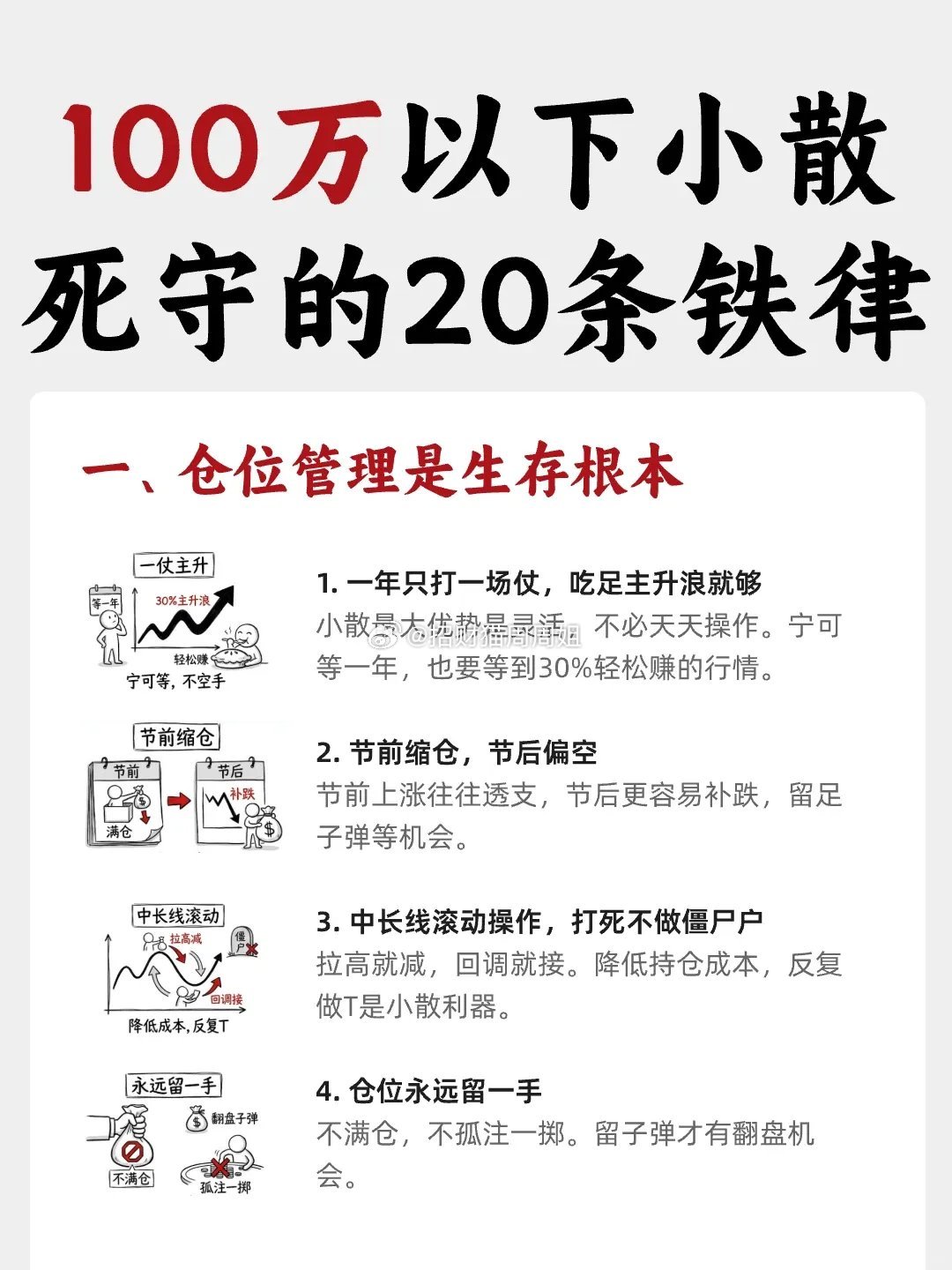 炒股十多年,我终于悟了:这20条铁律,才是散户活下去的唯一出路!以下内容,仅供参