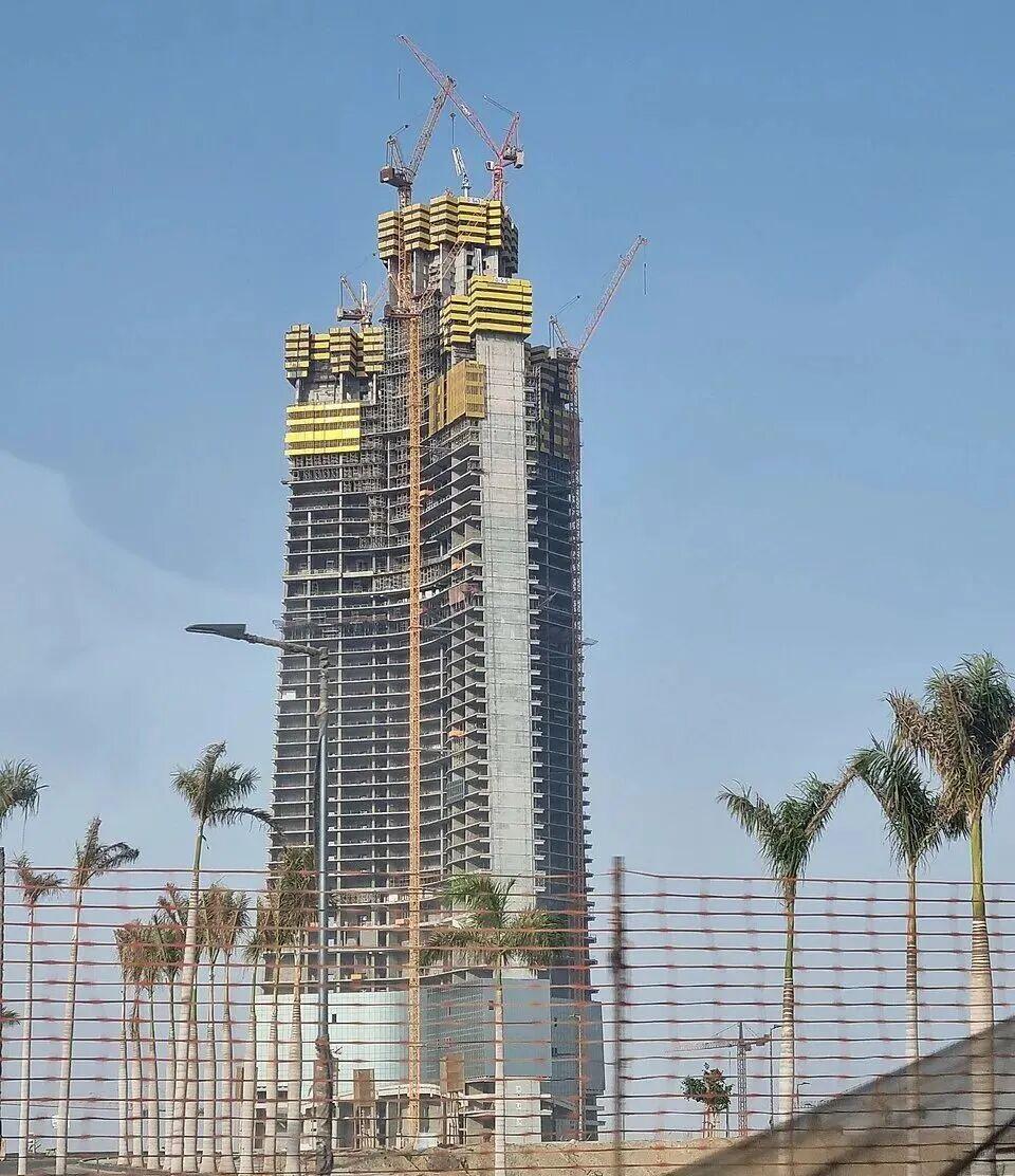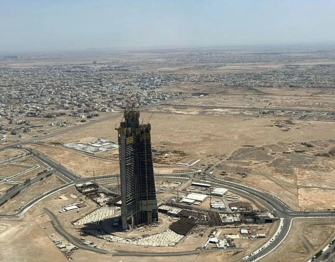 这座沙漠中的千米筑梦之路,走得并非一帆风顺。项目2013年正式启动建设,初期推进顺利,却在2018年建至63层、约360米高度时,因多重因素陷入长达近七年的全面停滞。转机出现在2025年,随着沙特“2030愿景”的深入推进,项目获得全新资金与合约支持全面复工,建设进度迎来跨越式提速。复工后的施工团队以最快3天一层的效率稳步推进,截至2026年初,项目主体结构已顺利突破80层,中央核心与两翼混凝土工程完成过半,预计2026年内即可冲刺100层节点,按照建设规划,项目将于2028年8月正式竣工。