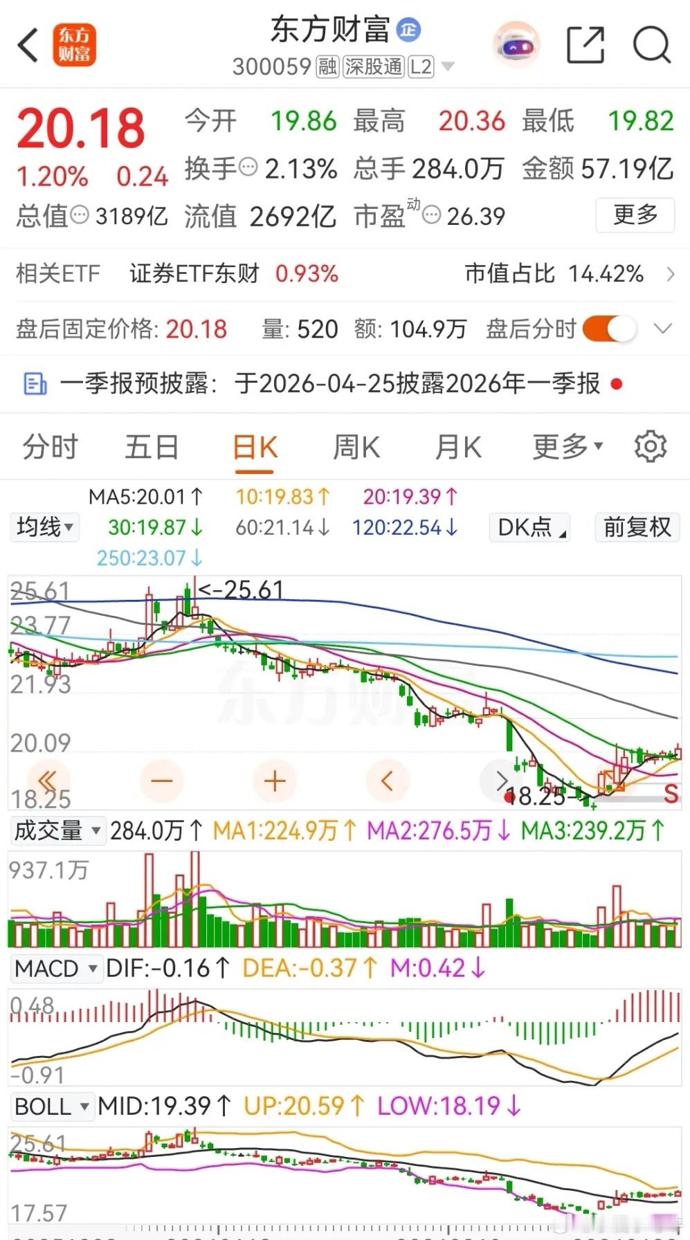 东方财富和中信证券低开高走,分别上涨了1.20%和1.56%,在2026年4月的累计涨幅分别为7.40%和11.11%。从技术面上看,中信证券的走势要明显强于东方财富。