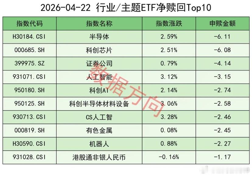 证券公司指数(-4.14亿)、港股通非银人民币指数(-1.17亿),一起进入赎回榜。