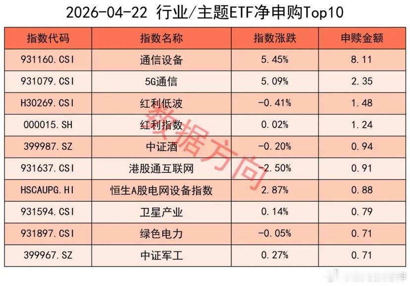 沪深300指数(-36.06亿)、中证500指数(-22.06亿),净赎回分别超过30亿、20亿。