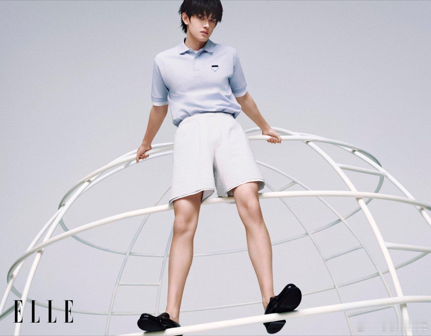 忙碌拍摄现场里,白色球形支架似未知新生星球静立在纯白背景中。闪光灯明灭、人声嘈杂,登陆少年组合五个男孩逐一攀上这颗“星球”,在众人注视下肆意探索,亲手建构属于他们的全新专属世界。ELLE登陆星球计划ELLE五月刊