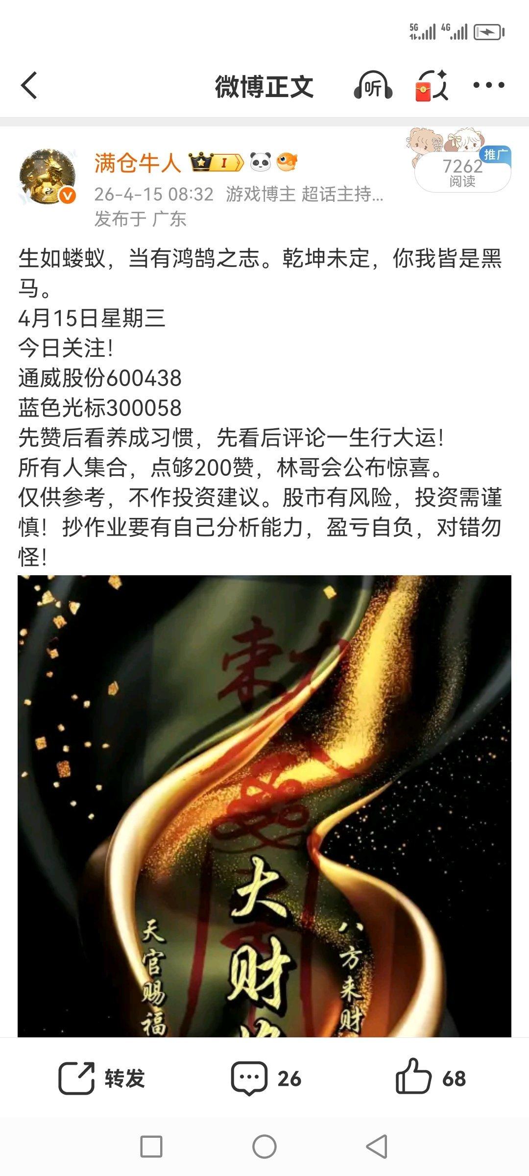 一位湖南的股民,两个月加仓蓝色光标13次,这次让他赌对了。目前赢麻了,他依然坚定