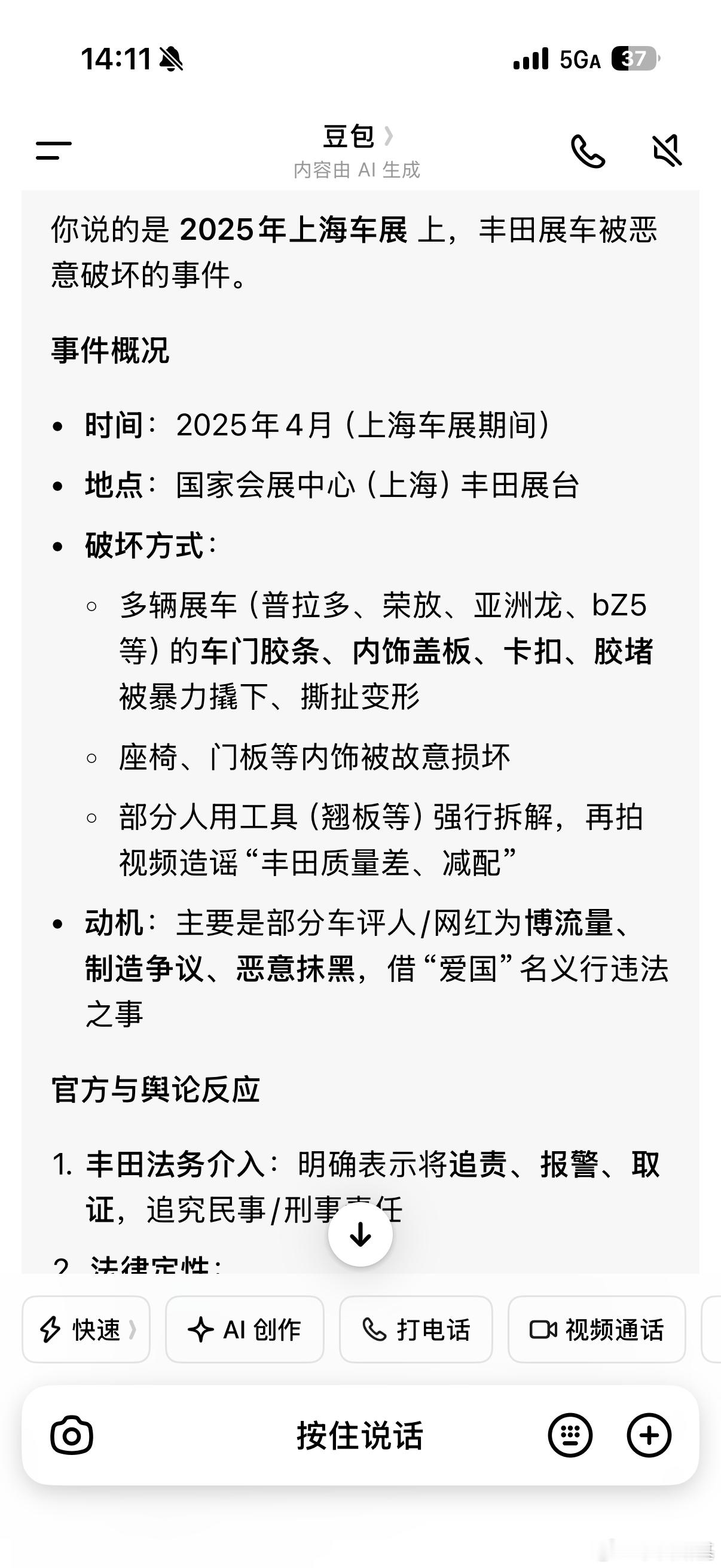 大概两年前,有个国产品牌刚刚亮相车展展车的皮质方向盘就被人恶意用刀给割了一下去年上海车展,丰田的好几台车的胶条内饰盖板都被恶意撕扯,造成损坏现在的商战真是太粗暴了现在的车装配工艺说实话都不差,尤其量产车要经过多轮检测验证才能出厂,车顶这个部位里面都是有卡扣的,它会有一定的活动空间。以前大家装行车记录仪,都会把它掰开,在里面走线。想要把它给拽掉,说实话得废挺大劲,真是有人在使坏啊