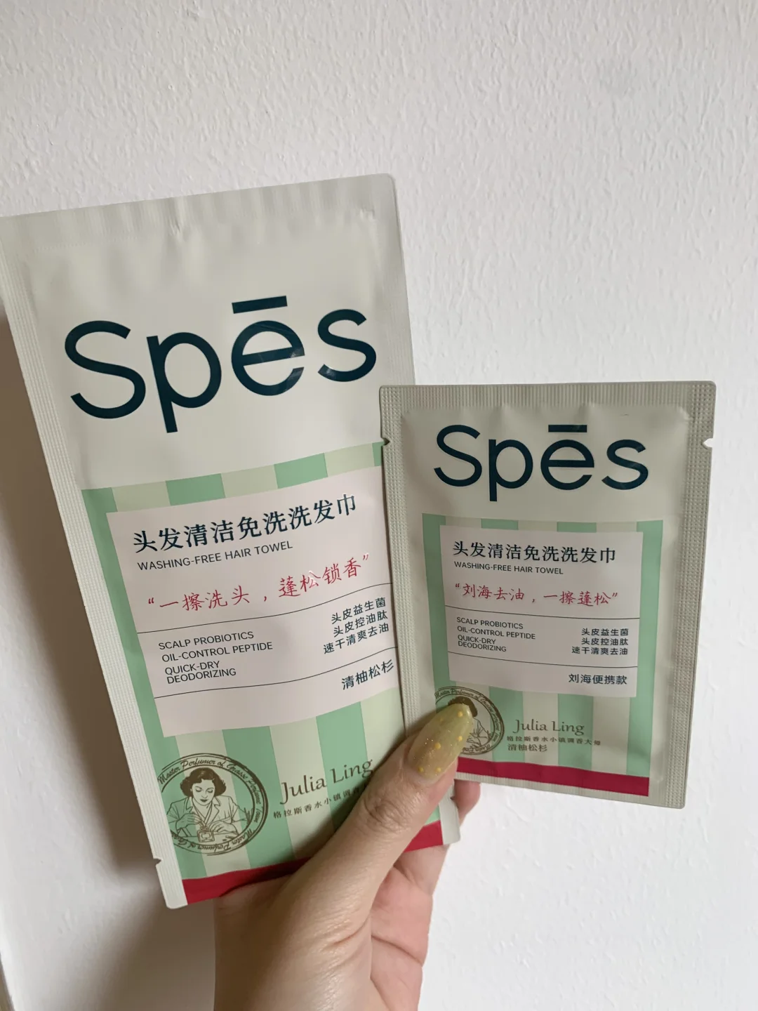 第一次尝试免洗洗发巾,太神奇了,之前用蓬蓬粉控制不好量就很容易泛白有粉末,亲测这个完全不会,是吸附擦走的原理!!!!!我超级大油头,没精力洗头油的发痒的时候重点擦发根和头皮,这样藏在发缝里的头屑油脂粒就全带下来了,糊成一团像被牛舔过的塌颅顶也恢复哑光,就连刘海都是根根分明的空气感……用完整个脑袋变得轻飘飘的,包括拿手去摸头皮都无敌清爽,我还偷偷闻了下指尖啥臭味都没,反而香香的!是淡淡葡萄柚混合小苍兰的味道!好用到出乎我意料了有点[石化R]