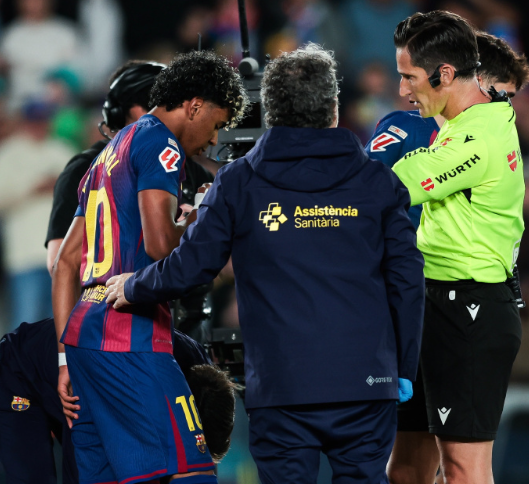 巴萨1比0塞尔塔,亚马尔在第40分钟罚进制胜点球,但是罚进点球后他立刻感到左腿疼痛,随即示意要求换人。