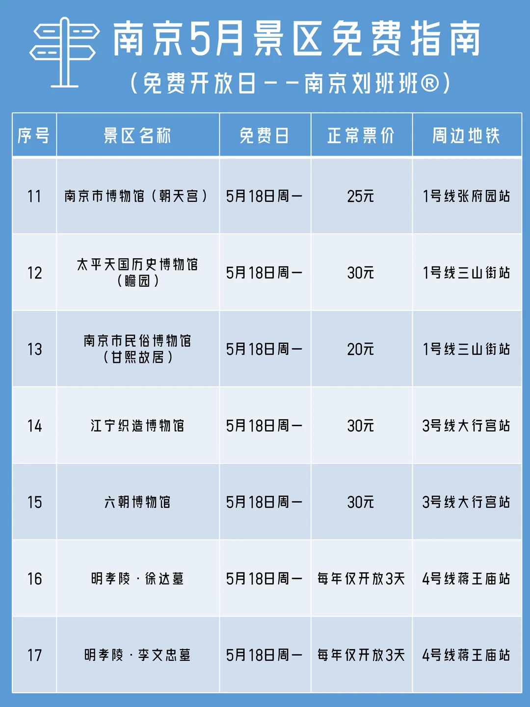 🗺️每年5月都是南京景区扎堆迎来一年一度的免费开放日的月份,开放数量占全年近一半~