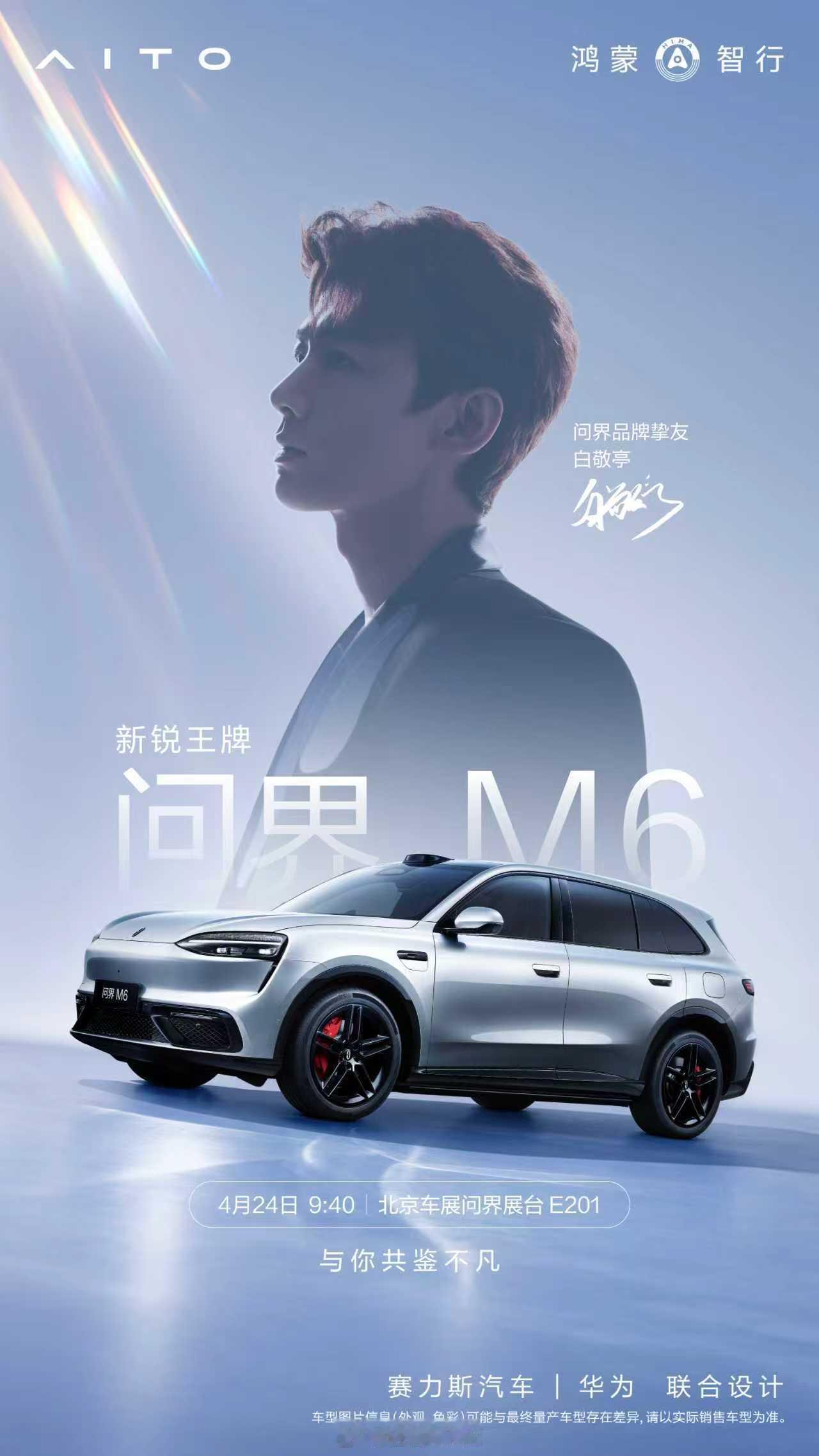 问界M6于4月22日正式上市,增程版25.98万元起、纯电版27.98万元起,新车全系标配华为乾崑智驾ADS4、896线激光雷达、途灵平台、空气悬架+CDC及9安全气囊,搭载鸿蒙ALPS健康座舱与HUAWEI SOUND音响。4月24号,“京”彩不断,“敬”请期待,北京车展见!问界汽车2026北京车展白敬亭