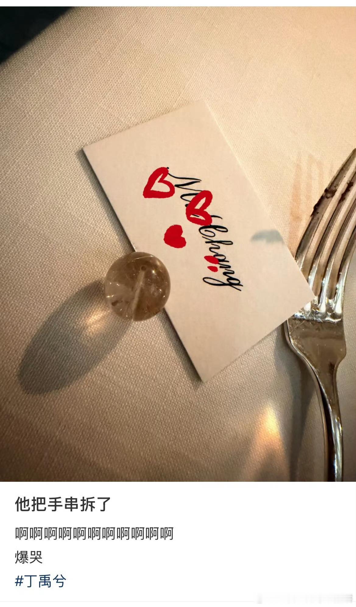 我去!!丁禹兮把今天带的水晶手链剪掉送给粉丝了!