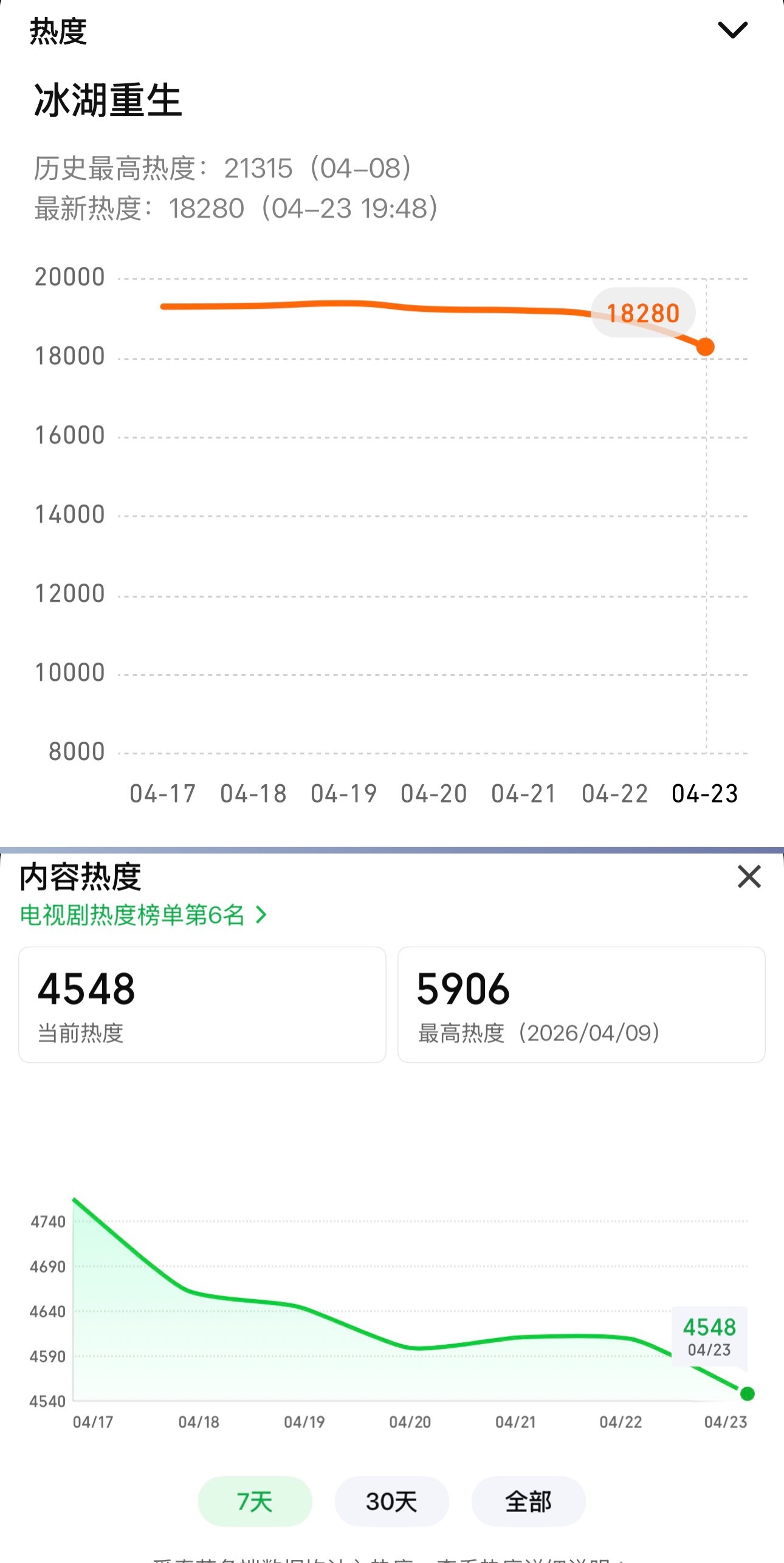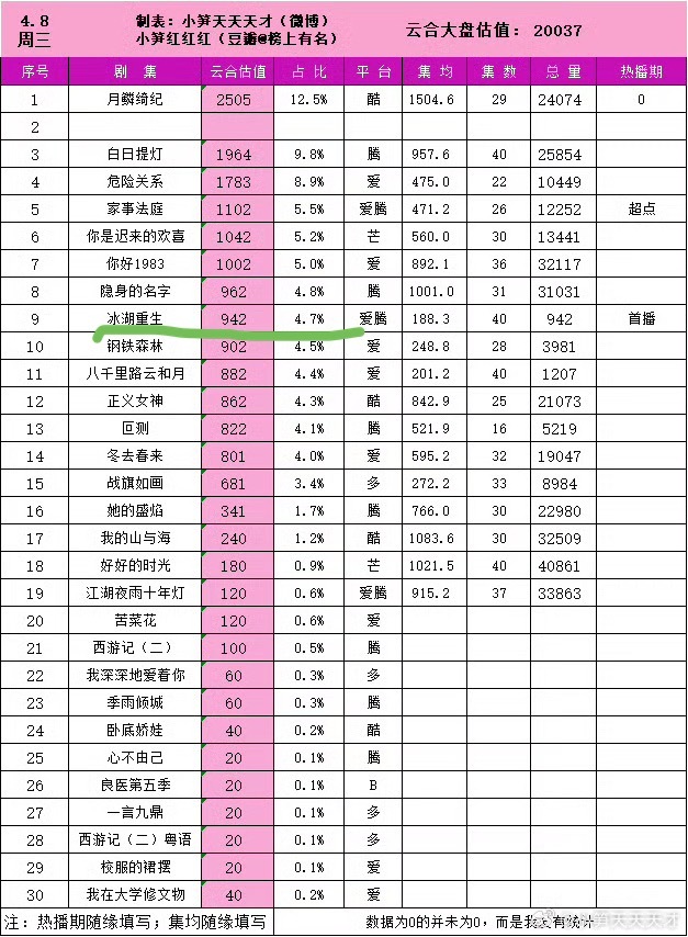 冰湖重生真是令人震撼:双平台全程0广 / 豆瓣评分3.0鹅热度最高21315, 桃5906云合单日最高942(首日,然后一路跌到600+横盘)
