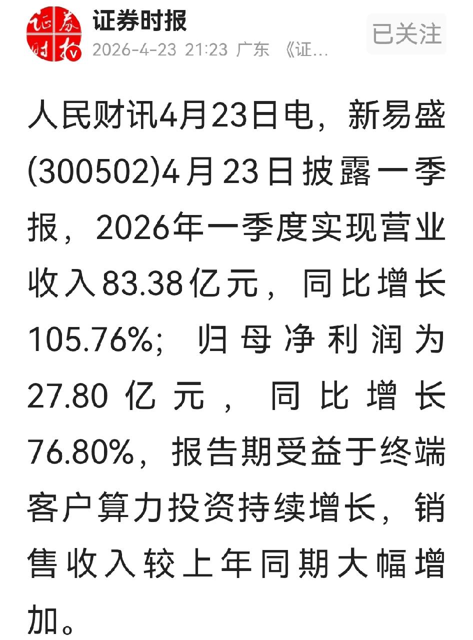我就奇了怪了,今晚满屏为何都说新易盛业绩不及预期? 看今晚新易盛公布的一季报,