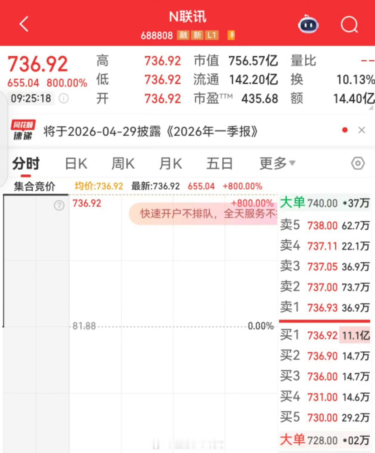 N联讯开盘上涨800%,报736.92元,中一签获利超32.7万,有人中签么