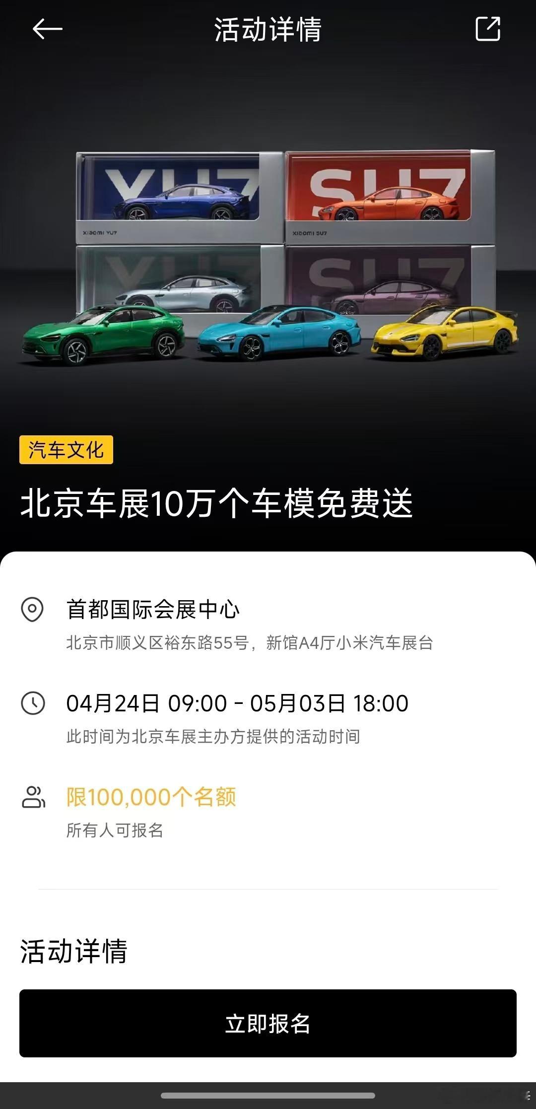 2026北京车展 能免费领小米车模。然后就见到了这样的场景啦,排队排出场馆外,大